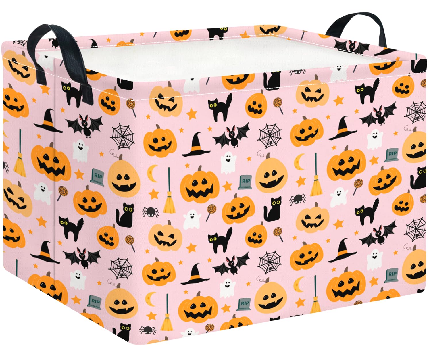 HKEC Rectangle Storage Basket with Handles,Collapsible Storage Bin,Books Box,Gift Basket(Halloween Cat Basket)