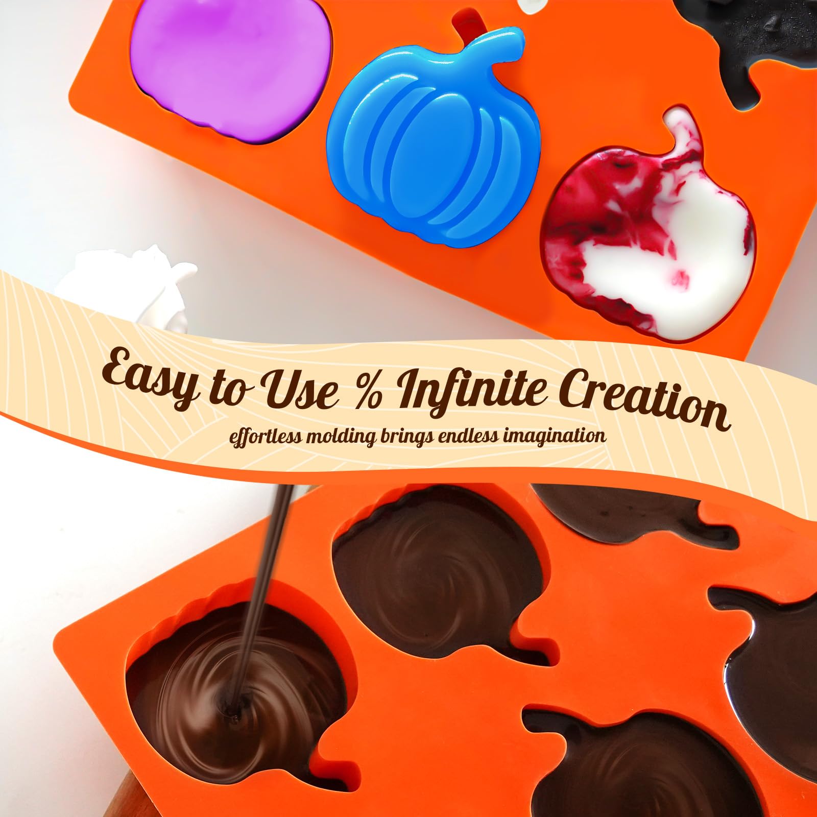 • 🎃 Versatile Uses Year-Round: More than just halloween molds for chocolate—perfect for baking mini cakes, freezing apple cider bombs, making soap, wax melts, resin art, gelatin, ice cubes, and more. A true multi-purpose tool for every season
