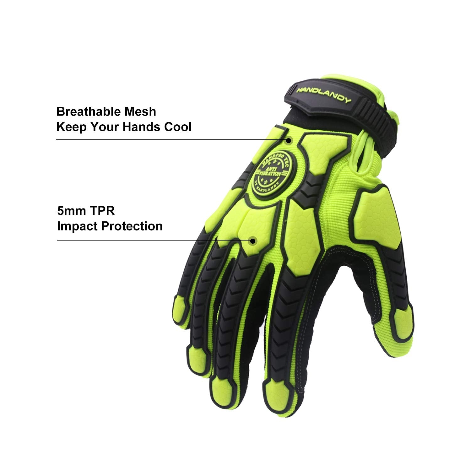 HLDD HANDLANDY Heavy Duty Work Gloves, SBR Padding, TPR Protector Impact Gloves, Men Anti Vibration Mechanic Work Gloves TouchScreen (L, Green)