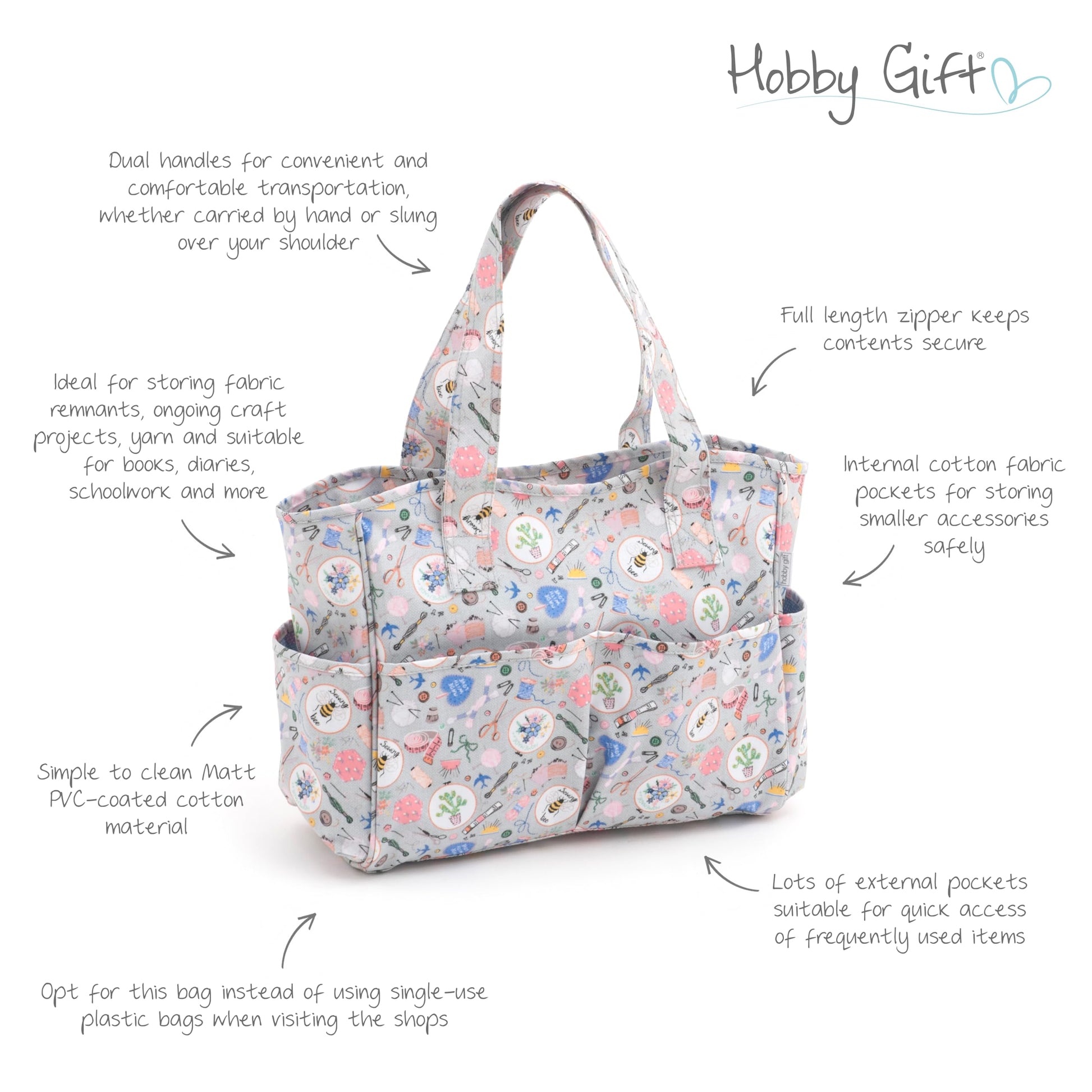• [Versatile] - These bags are versatile printed bags, lined with a colour co-ordinated polyester lining, featuring lots of multipurpose pockets and a full-length zipper making them suitable for sewing, knitting, crafting, garden tool storage, shopping and much more.