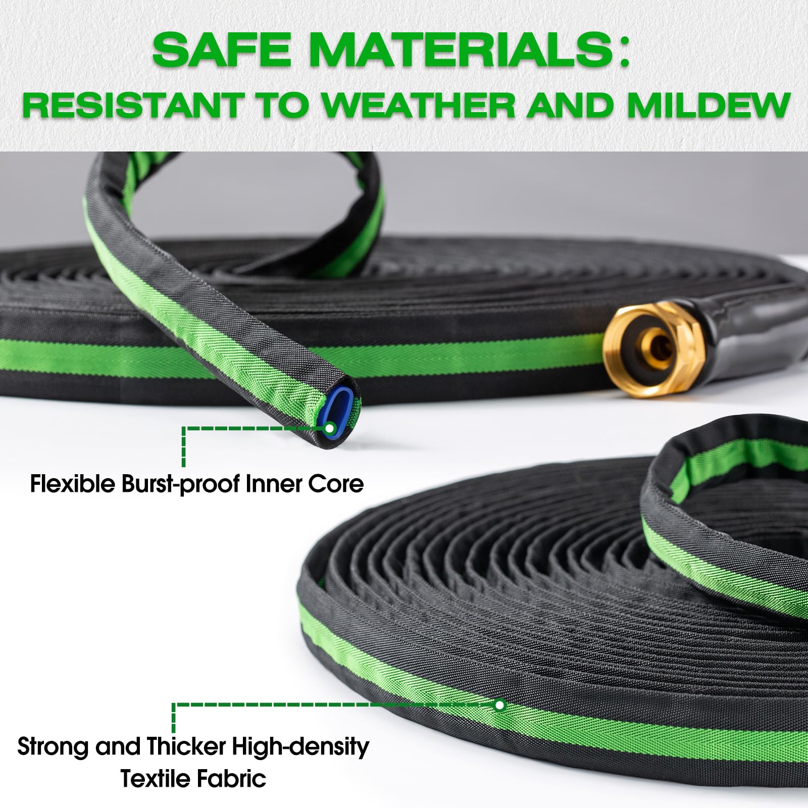 • Kink-Free Technology ensures convenient operation: Say goodbye to those hoses that are prone to kinking and tangling. Our garden hose adopts an innovative anti-kink design to ensure a smooth and uninterrupted water flow. This kink-free hose makes your watering and cleaning tasks more efficient by maintaining a continuous water flow, and it is the ideal garden hose.