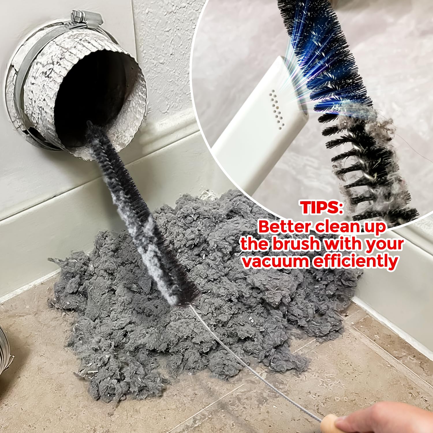 • 2Pack Hosehold Cleaning Brush: Efficiently remove trapped lint, dust and pet hair from dryer vents, exhaust ports, and under appliances to prevent fire hazards and improve dryer performance