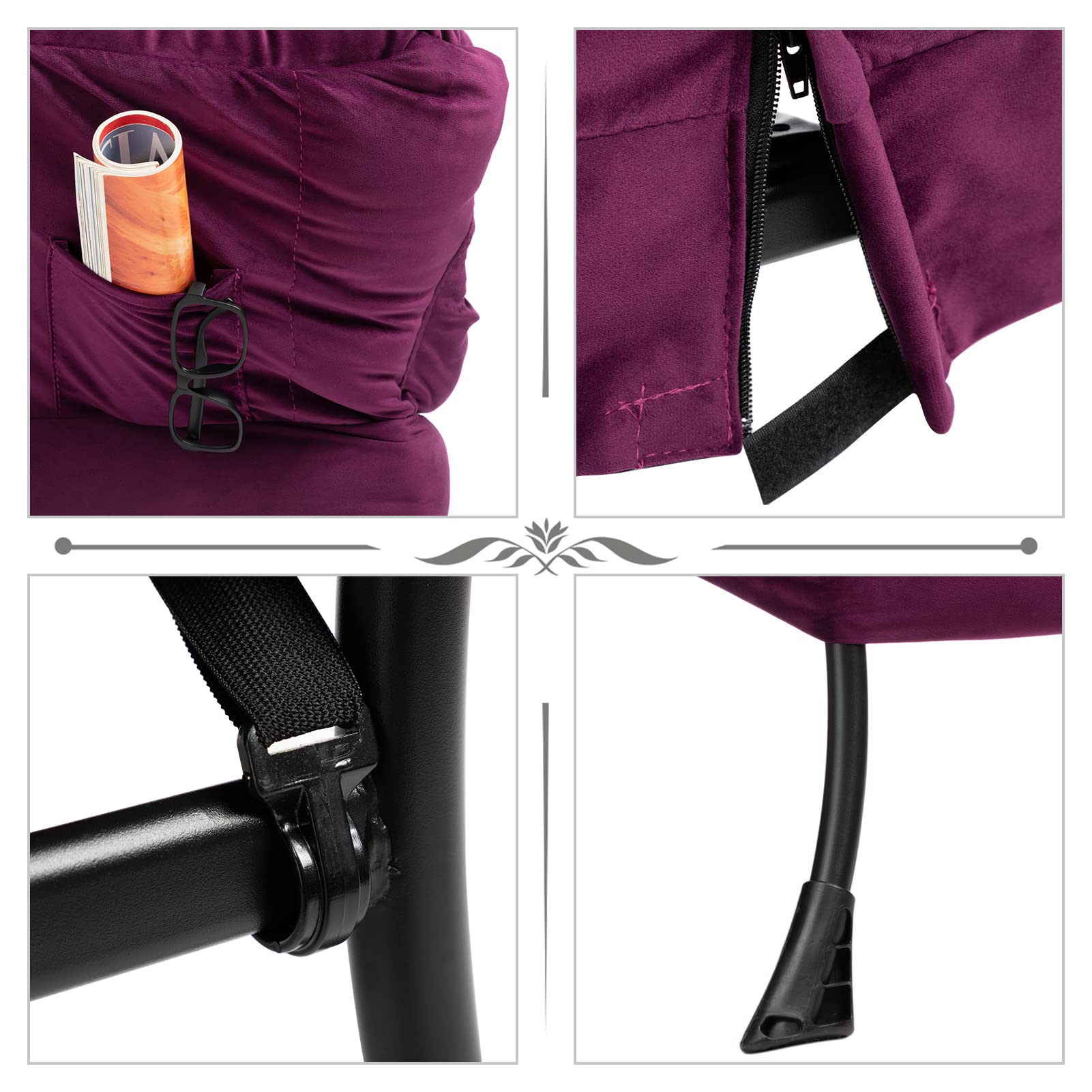 HollyHOME Lazy Chair with Armrest and Side Pocket, Comfy Accent Lounge Chair,Leisure Sofa Armchair for Living Room, Bedroom, Dorm, or Small Spaces, Oversized Reading Sofa Chair,Velvet Deep Purple