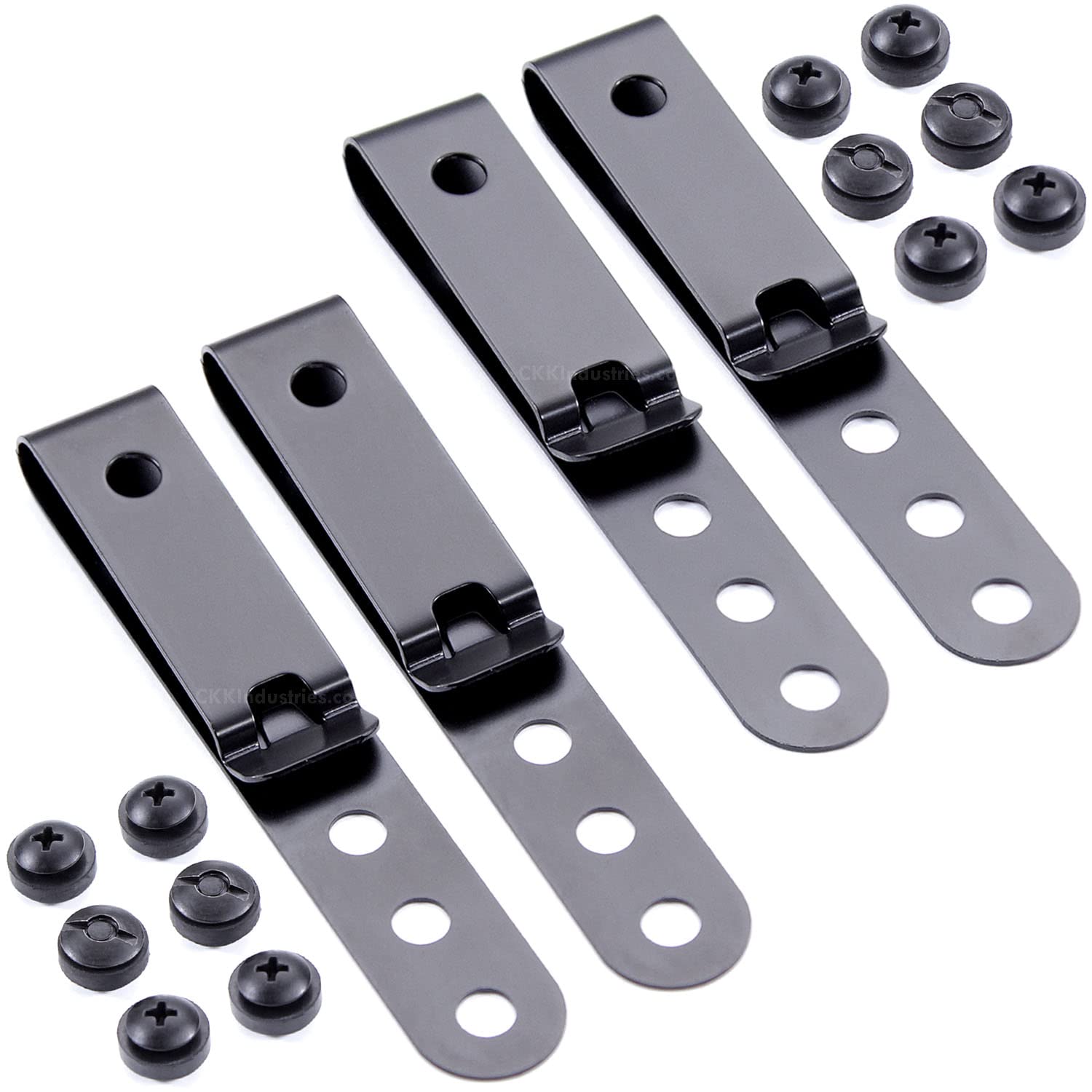 HolsterSmith Universal Metal Belt Clip for Holster Making - (Model 5) - (3-Hole) - (Tactical Black) - (w/SPTHA Mounting Hardware) - (4 Pack)