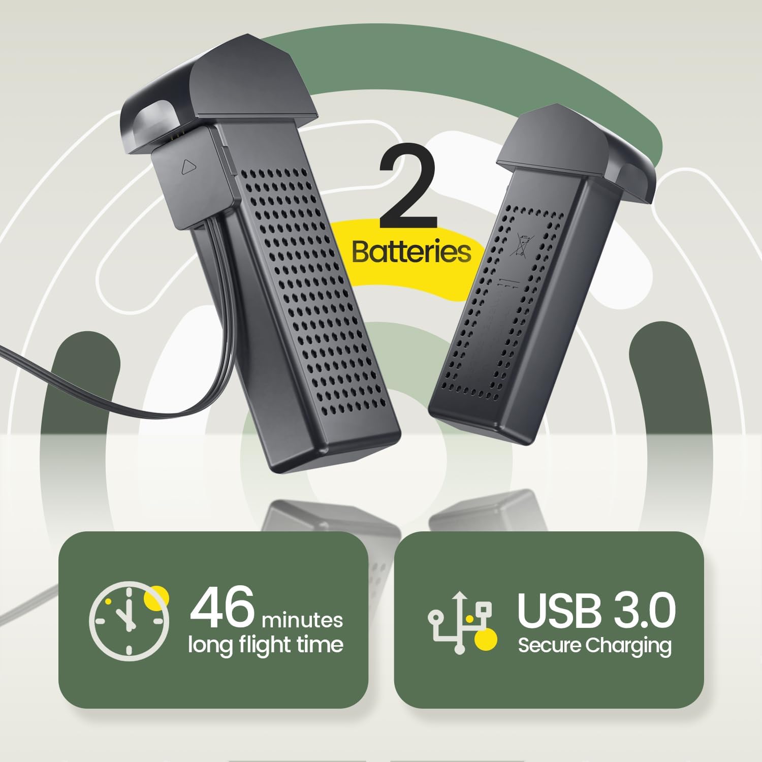 • Better Flight Experience: 2 batteries give you up to 46 minutes flight experience. And functions like Altitude Hold, Optical Flow, Headless Mode, One Key Take Off/Landing and Speed Adjust make it so easy to beginners or newbies.