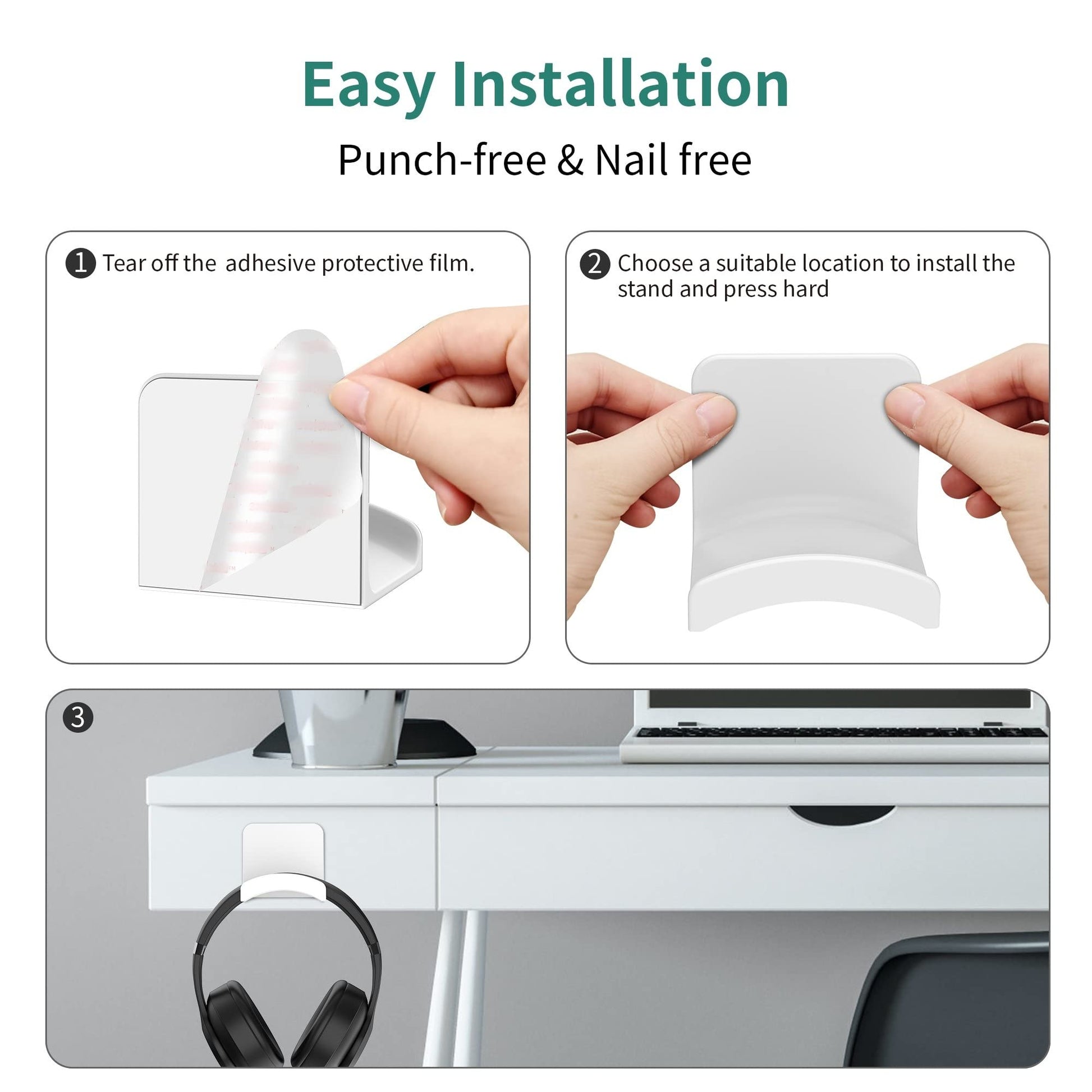• Side of your Desk Headphone Stand: HomeMount headphone stand can be easily sticky to the side of your desk or computer case.Our headphone stand features a strong adhesive backing that allows it to be easily installed on any smooth surface, making it a hassle-free solution for your headphone storage needs