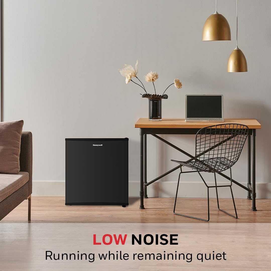 Honeywell Compact Refrigerator 1.6 Cu Ft Mini Fridge with Freezer, Single Door, Low noise, for Bedroom, Office, Dorm with Adjustable Temperature Settings, Black