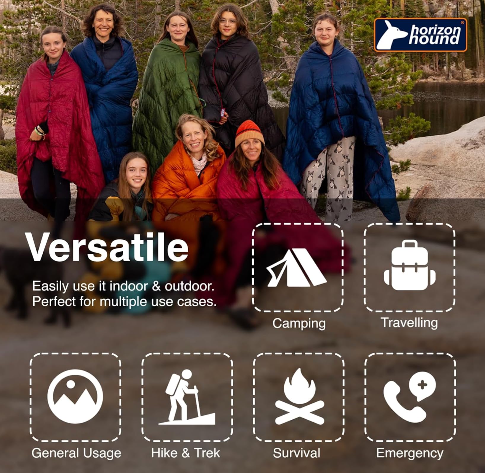 • VERSATILE DESIGN: For backpacking, hiking, a festival, the couch or beach, our puffy down throw clips together for a warm poncho-style stadium blanket. Pairs well with the rest of your thermal equipment for warmth in winter.