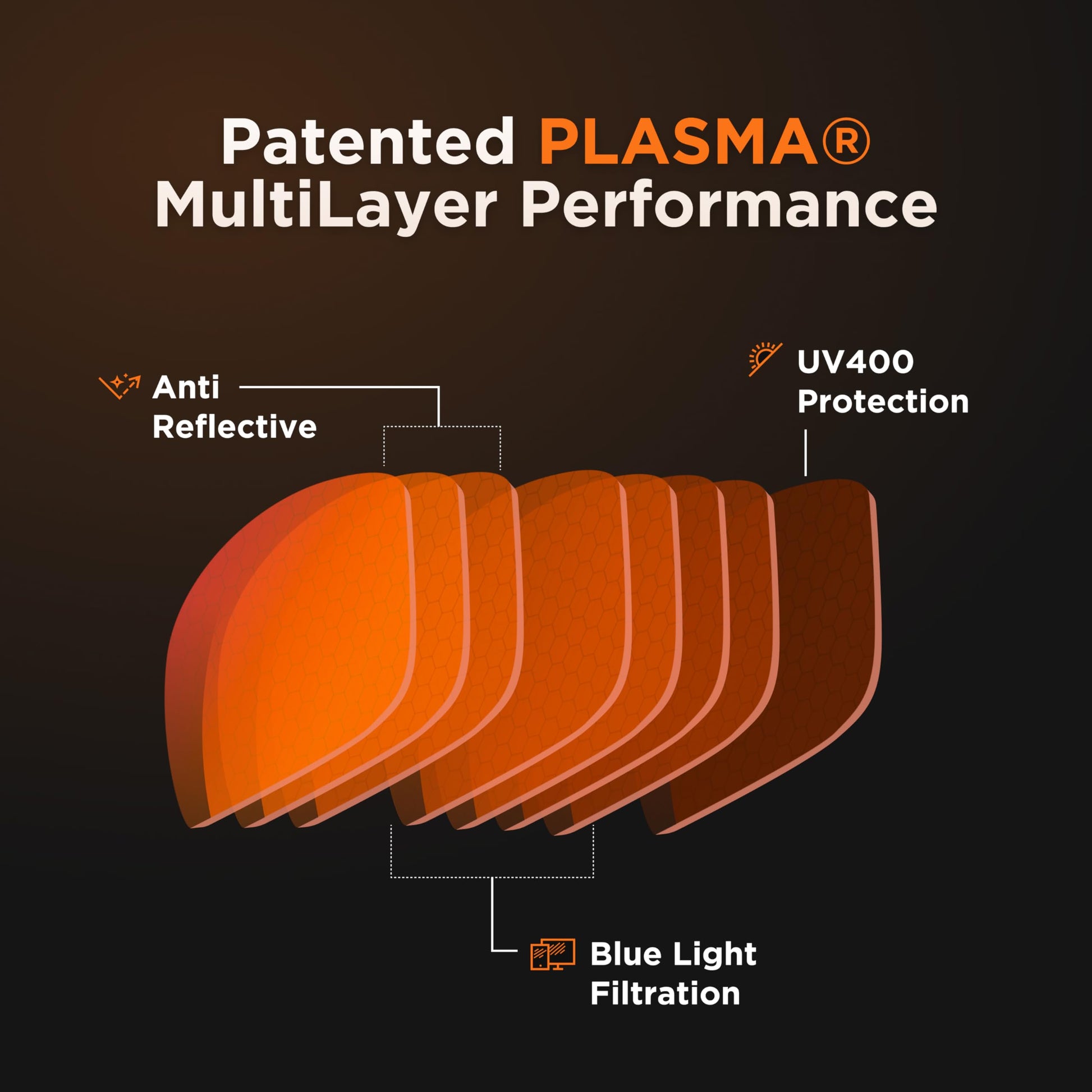 • 🛡️ Patented PLASMA Technology (Amber): Gaming glasses. Filters 100% of blue light from 380 to 400nm // 86% across the spectrum [380nm to 450nm]. Provides 100% UV protection.