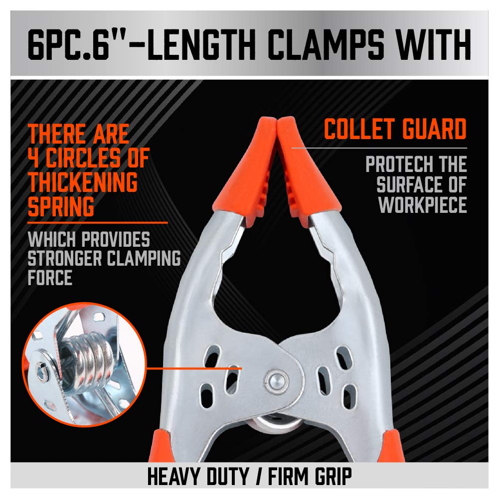 HORUSDY 6-Piece 6" inch Spring Clamp, Heavy Duty Spring Metal Spring Clamps, 2.5"-inch Jaw opening (6-Piece)