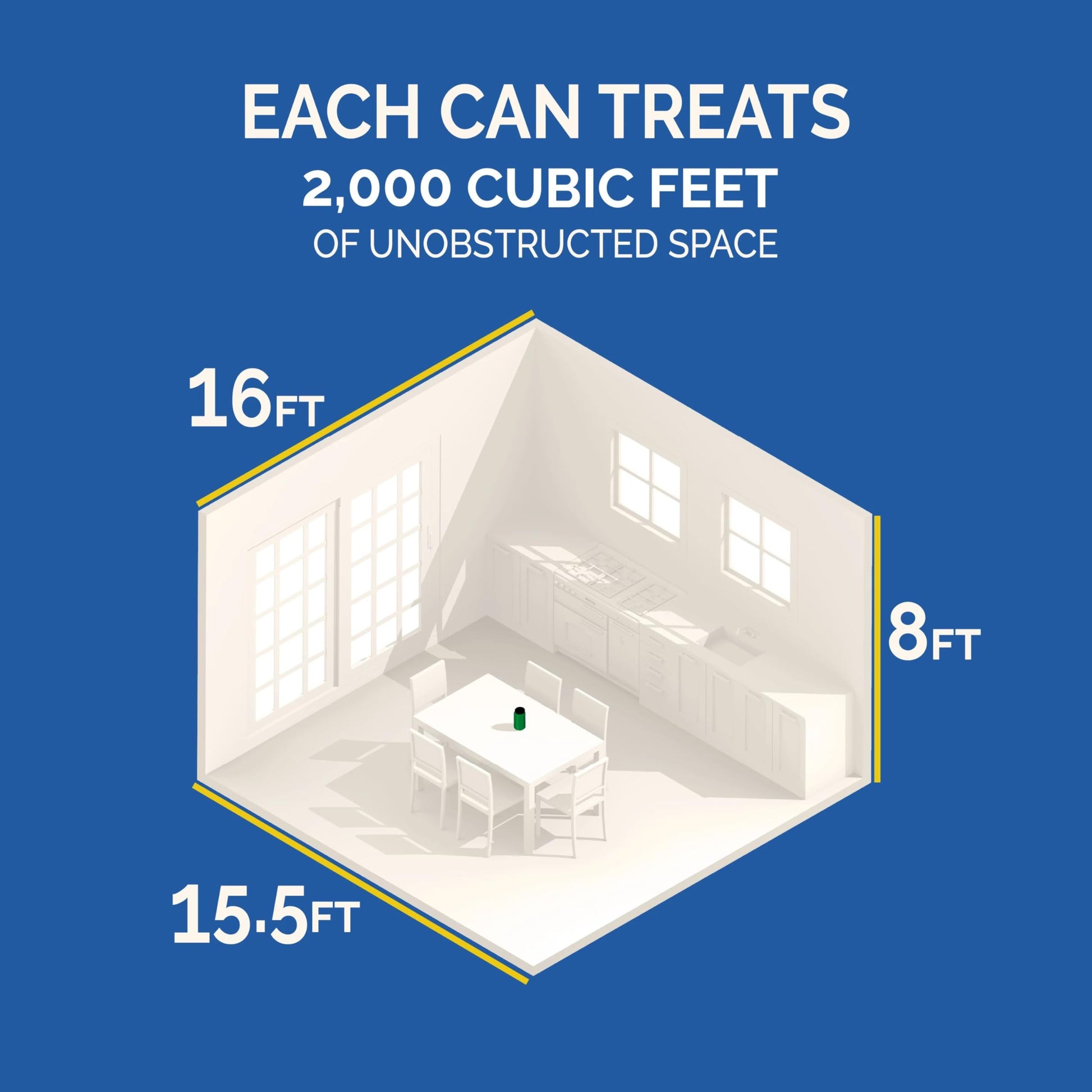 • EACH CAN COVERS 2,000 CU FT: Treats 2,000 cubic feet of unobstructed space (15.5 feet x 16 feet x 8-foot ceiling) – in rooms smaller than 5 feet x 5 feet, allow fog to enter from other rooms.