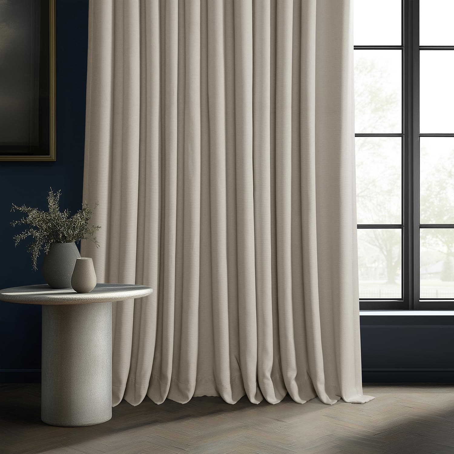 HPD Half Price Drapes - Faux Linen Curtains for Living Room (1 Panel) - 100W X 84L - Extra Wide Textured Room Darkening Curtains for Bedroom 84 Inches Long - Drapes for Home Decor, Birch