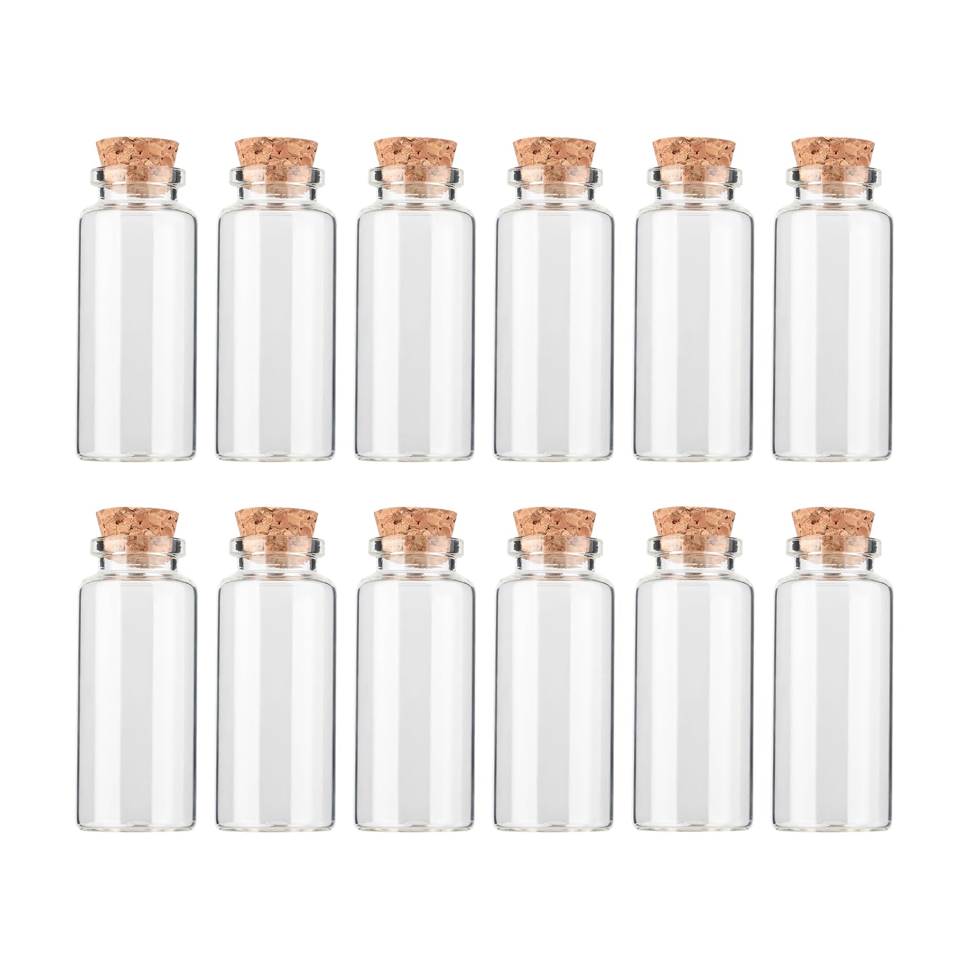• 1.This 12PCS small bottle is made of borosilicate glass, high transparency, high temperature resistance, smooth surface, sturdy. The cap is made of cork and the cork stopper can be firmly plugged the mouth of the bottl