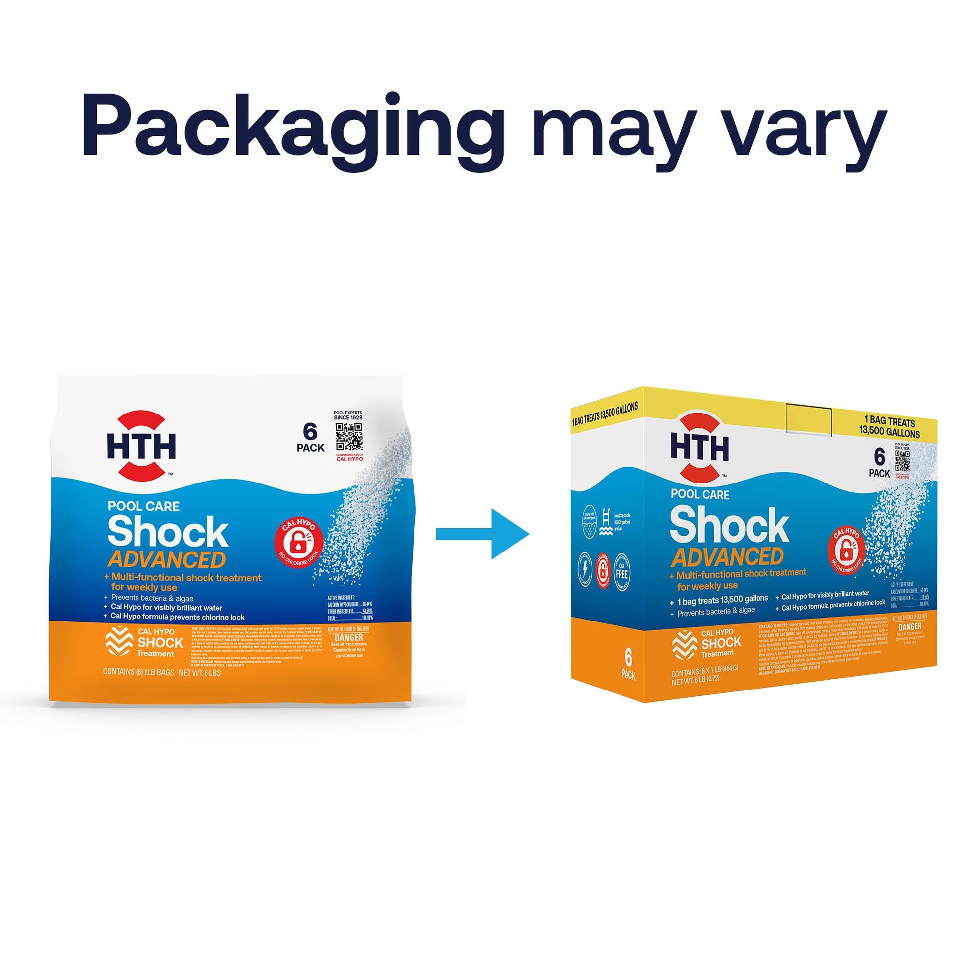 HTH 52036R Pool Care Shock Advanced, Swimming Pool Chemical - Cal Hypo Formula, Prevents Bacteria & Algae, Restores Crystal Clear Water - Shock Treatment, (6 Pack)