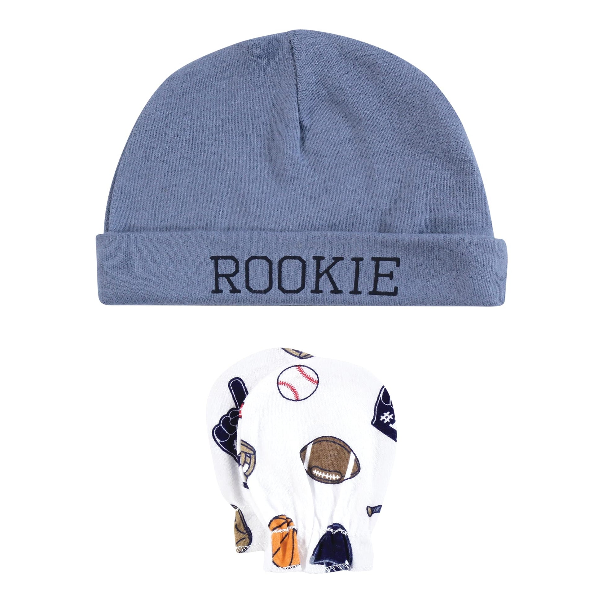 Hudson Baby Infant Boy Cotton Cap and Scratch Mitten Set, Sports Fan, 0-6 Months