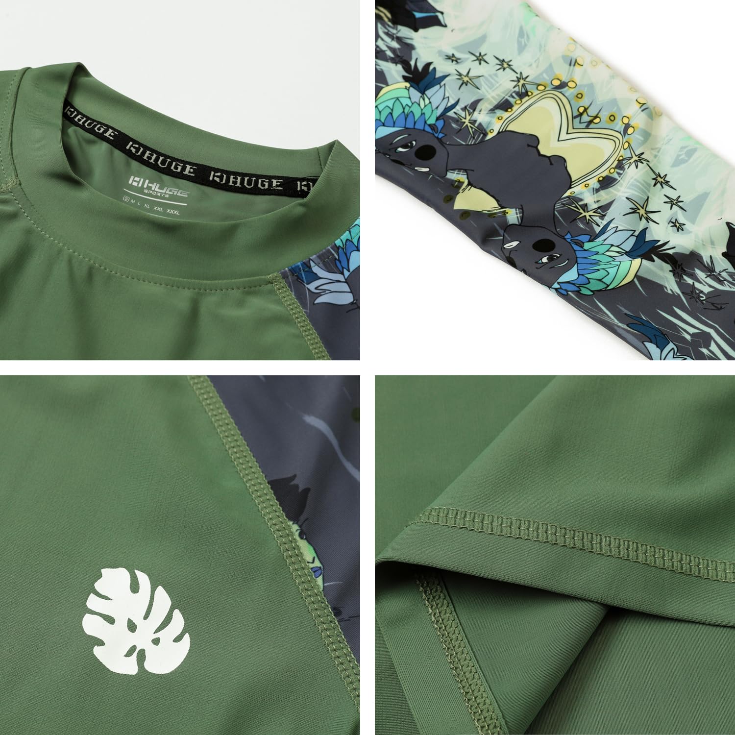 HUGE SPORTS Men's Rash Guard Long Sleeves UPF 50+ UV Sun Protection Quick Drying Splice Compression Swim Shirts