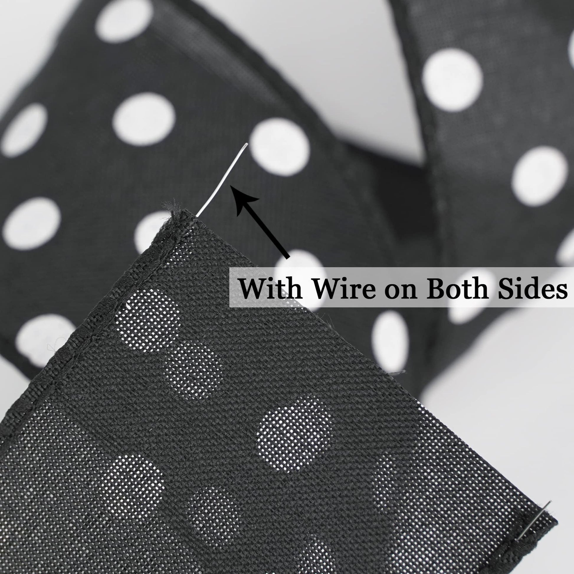 • [Size] 2.5'' by 10 Yards in black and white polka dot ribbon, perfect for wreaths, gift wrapping and much more.