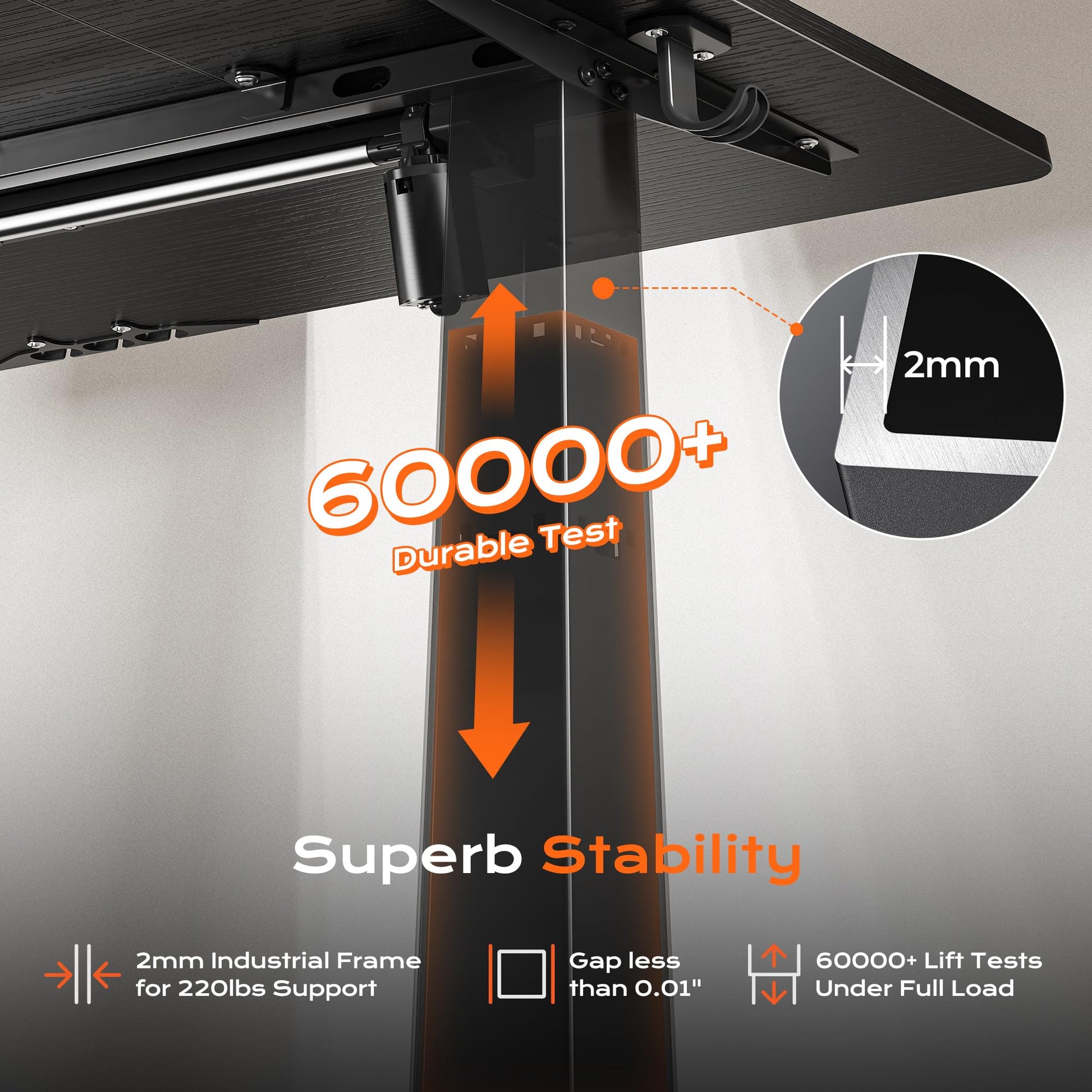 • 【Built to Last with Exceptional Stability】The industrial-grade steel frame and T-shaped design of the stand up desk support up to 220 lbs, ensuring stability and reliability for years to come. Paired with a durable motor, this home office desk is designed to meet the demands of your dynamic workday