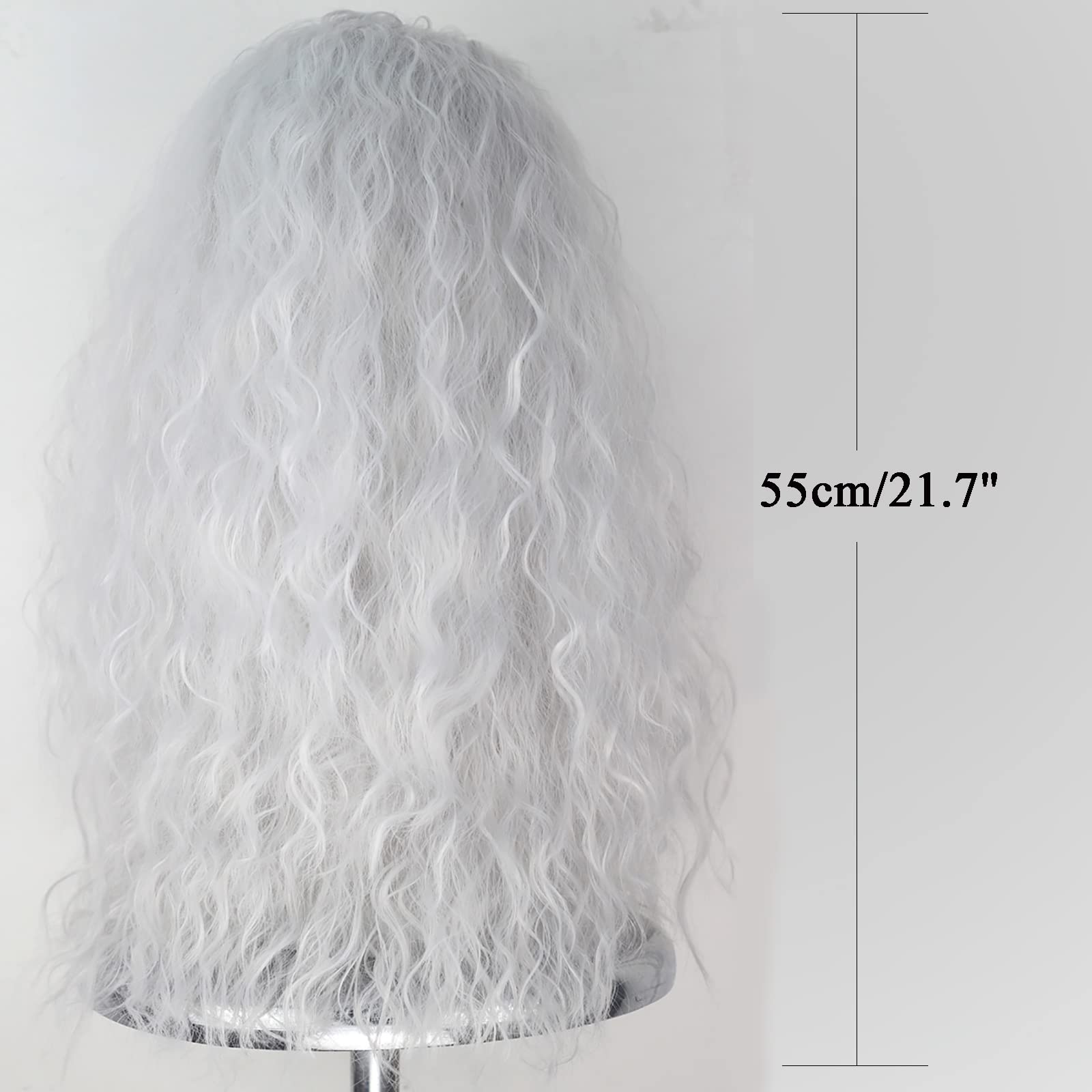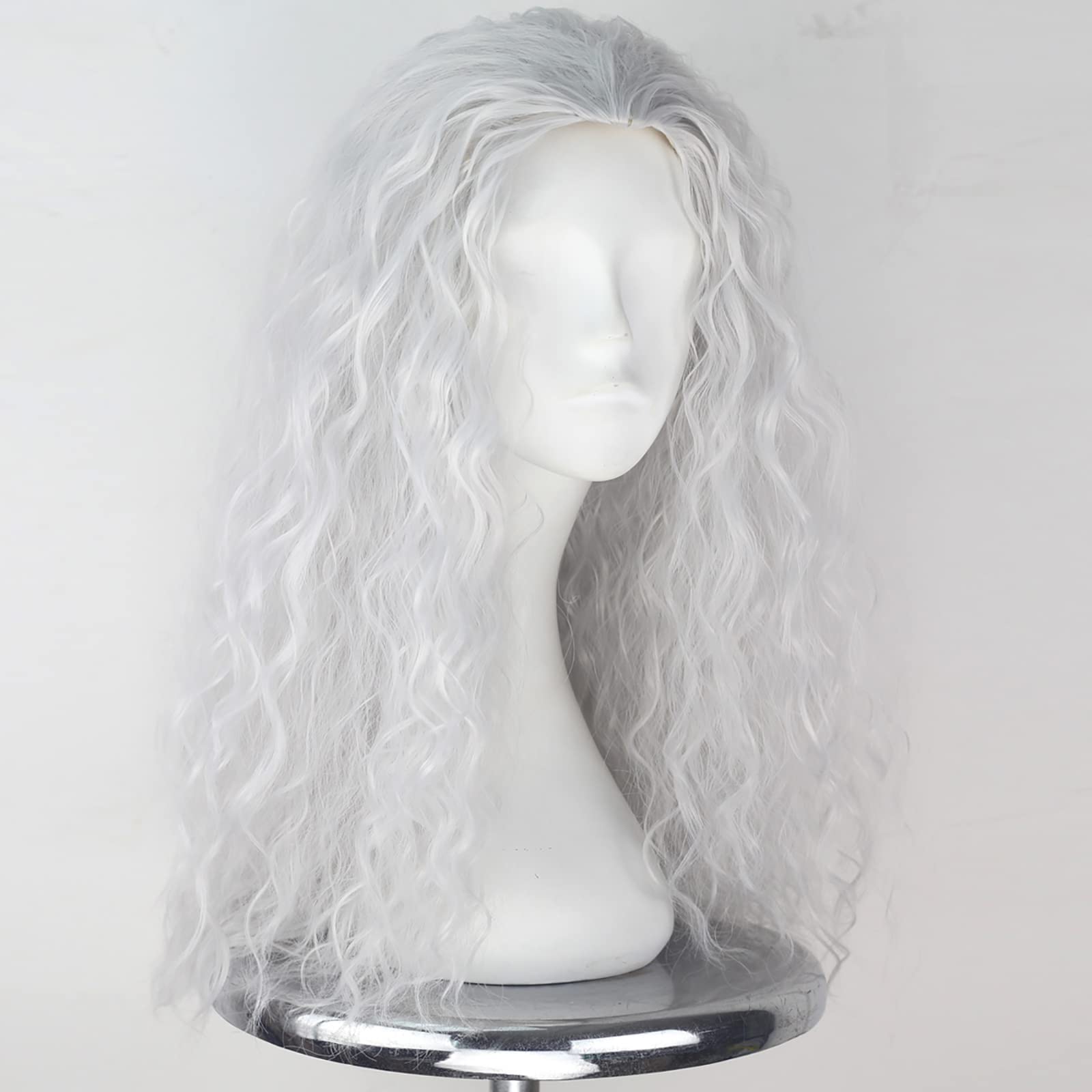 iCos Old Lady Wig - Long Curly Fluffy Dirty Silver Grey Witch Hair Wig for Grandma, Halloween Costume, Movie Cosplay, Punk Style - Adult Men & Women