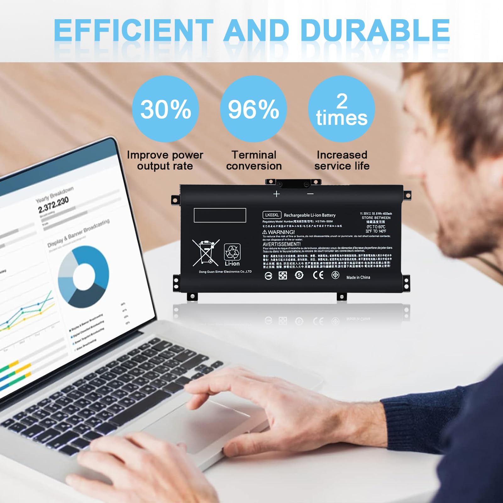 • GUARANTEE:100% New from Manufacturer. Up to 500 cycles over the life of the battery.