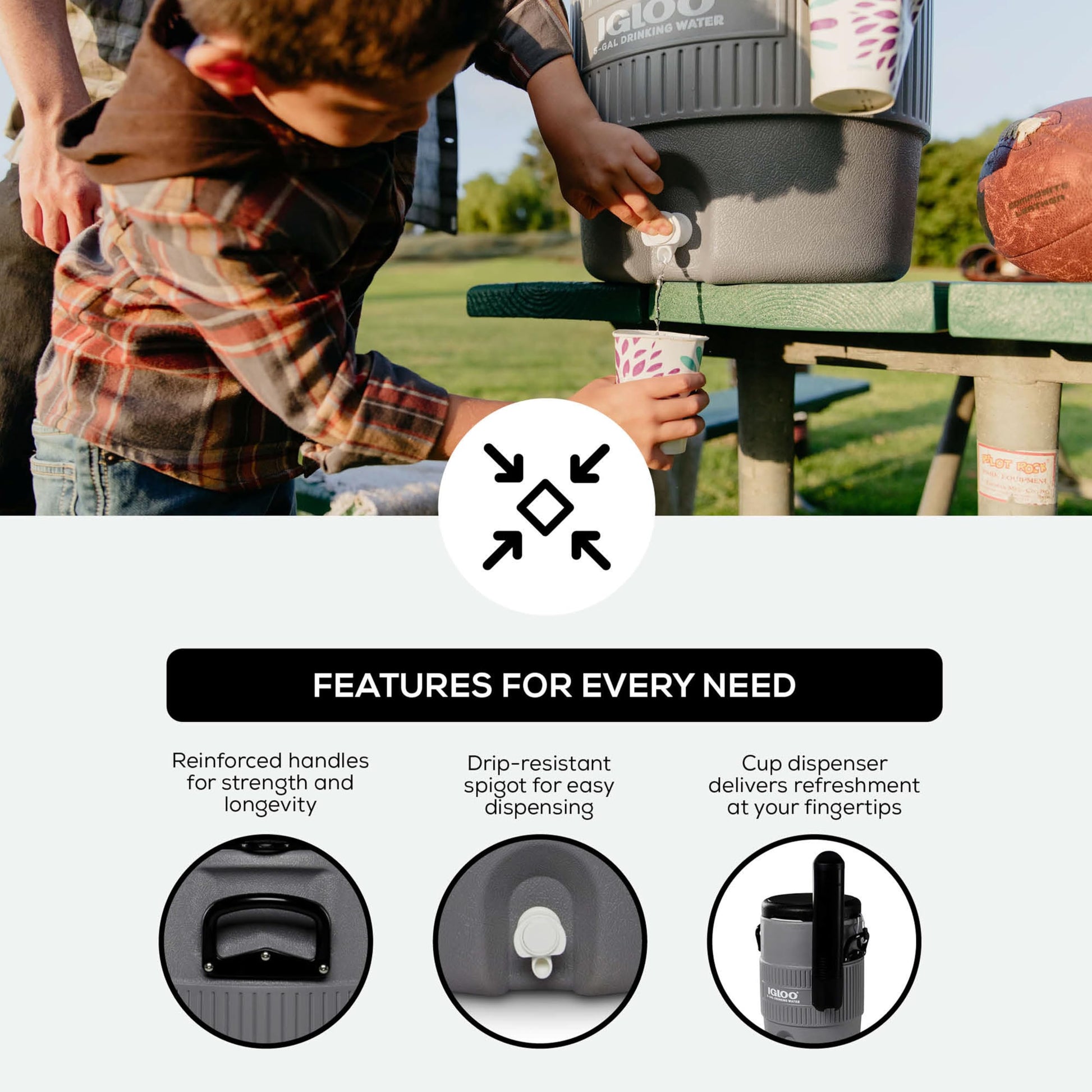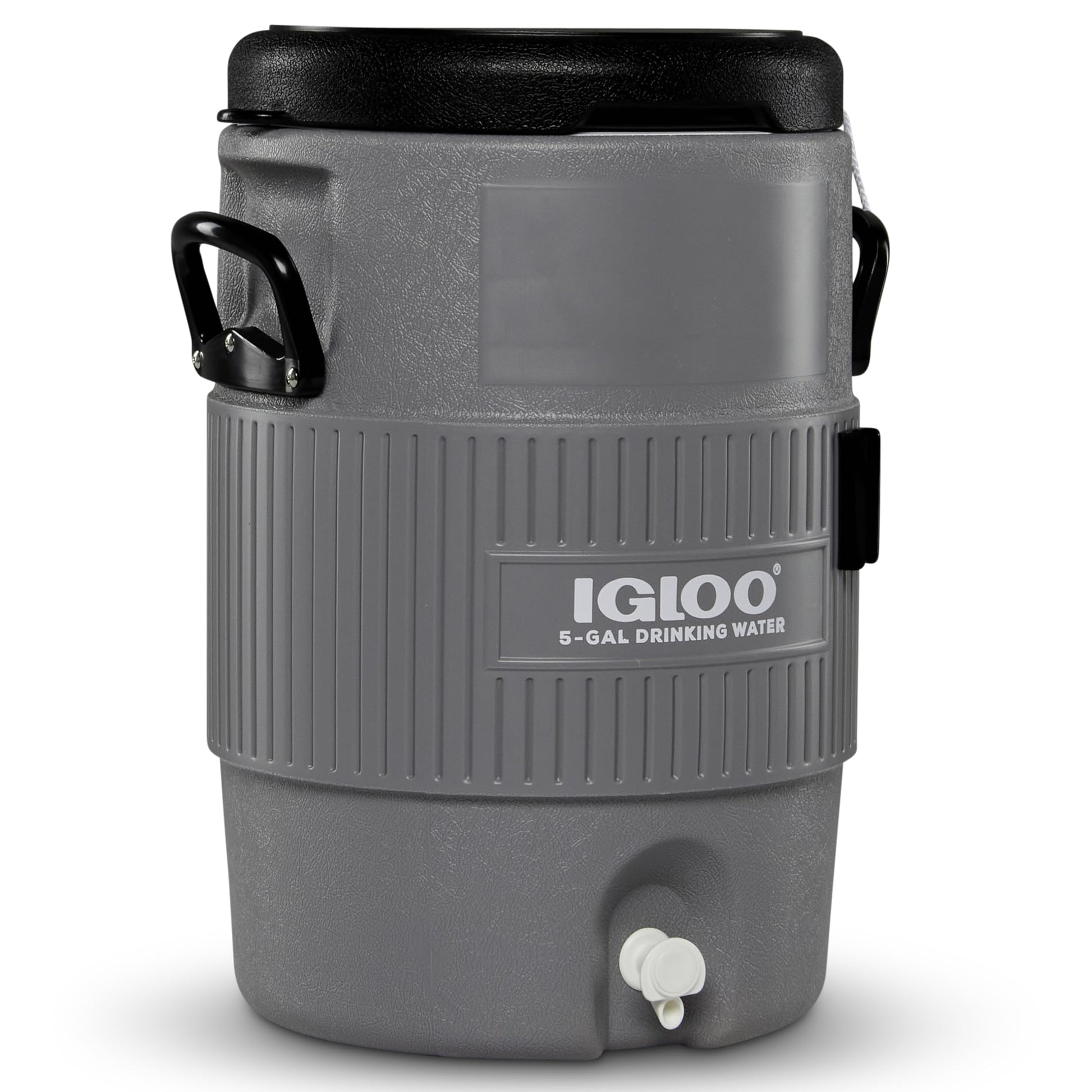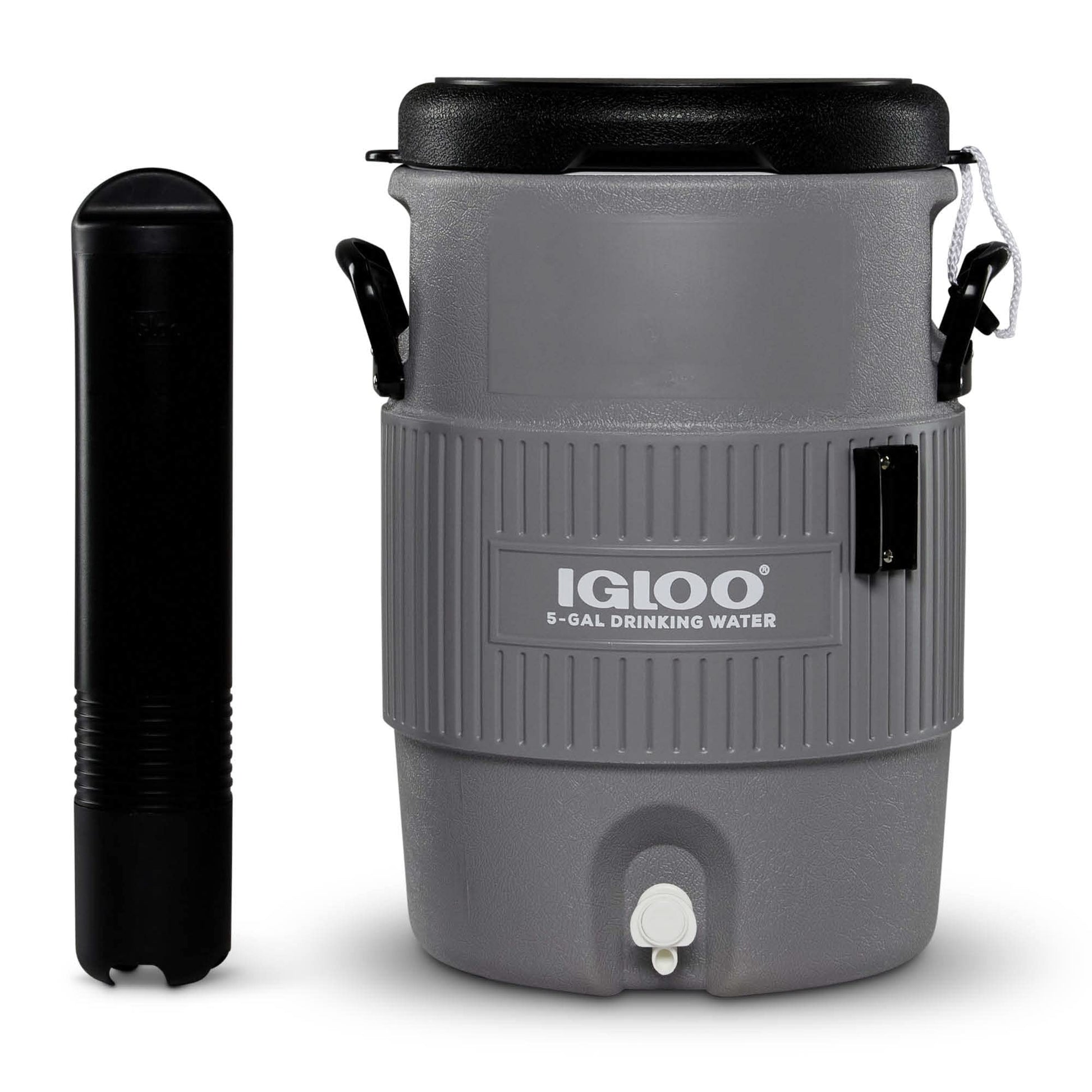 Igloo 5 Gallon Portable Sports Cooler Water Beverage Dispenser with Flat Seat Lid, Insulated Beverage Dispenser, Grey/Black