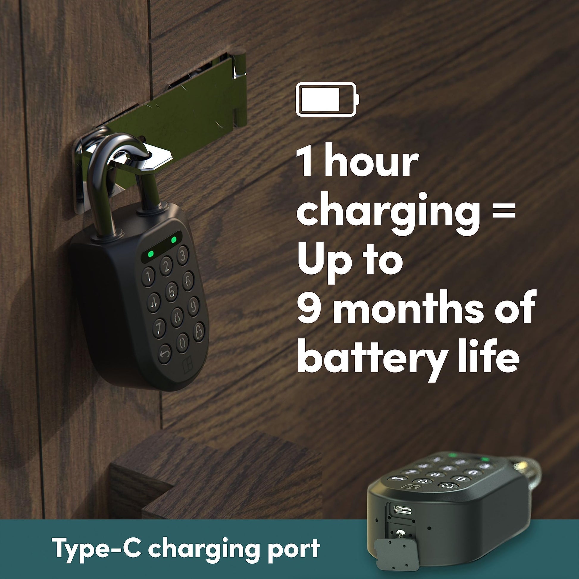 • RECHARGEABLE BATTERY – Rechargeable Li-Ion battery with battery life of up to 9 months with 1 hour of Type-C charging. Up to 8000 unlocks in 1 full charge. Type-C emergency power with a power-bank, laptop or tablet if your battery runs out.