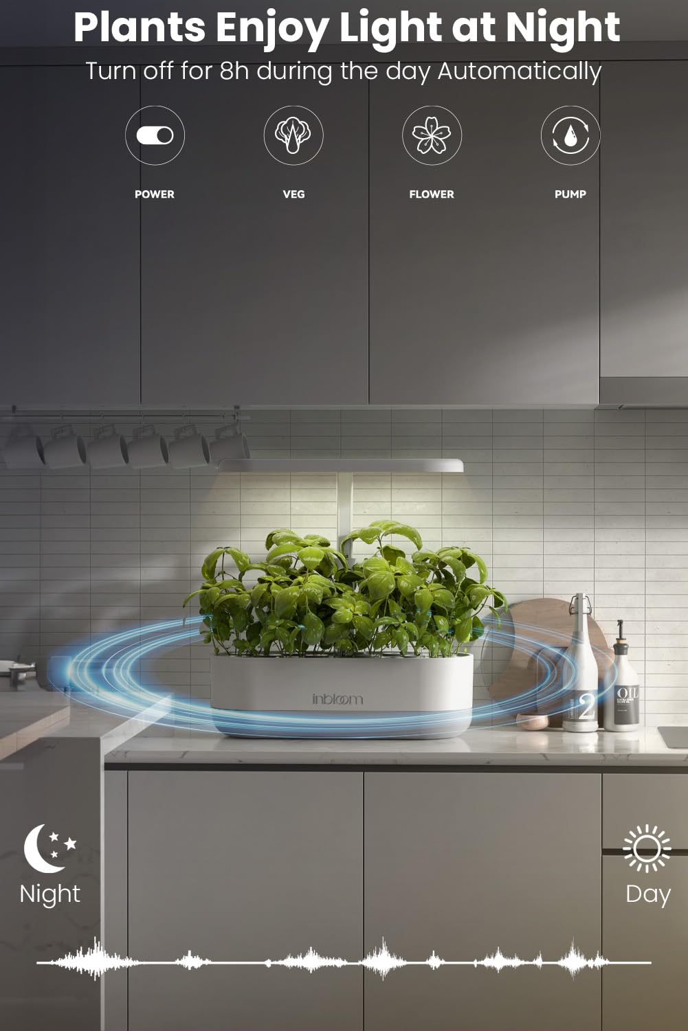 inBloom 12 Pods Hydroponics Growing System Indoor Garden with LED Grow Light and Pod Kit, Plants Germination Kit with 4.2L Water Pump Accelerate, Height Adjustable, Gardening Gifts for Women, White