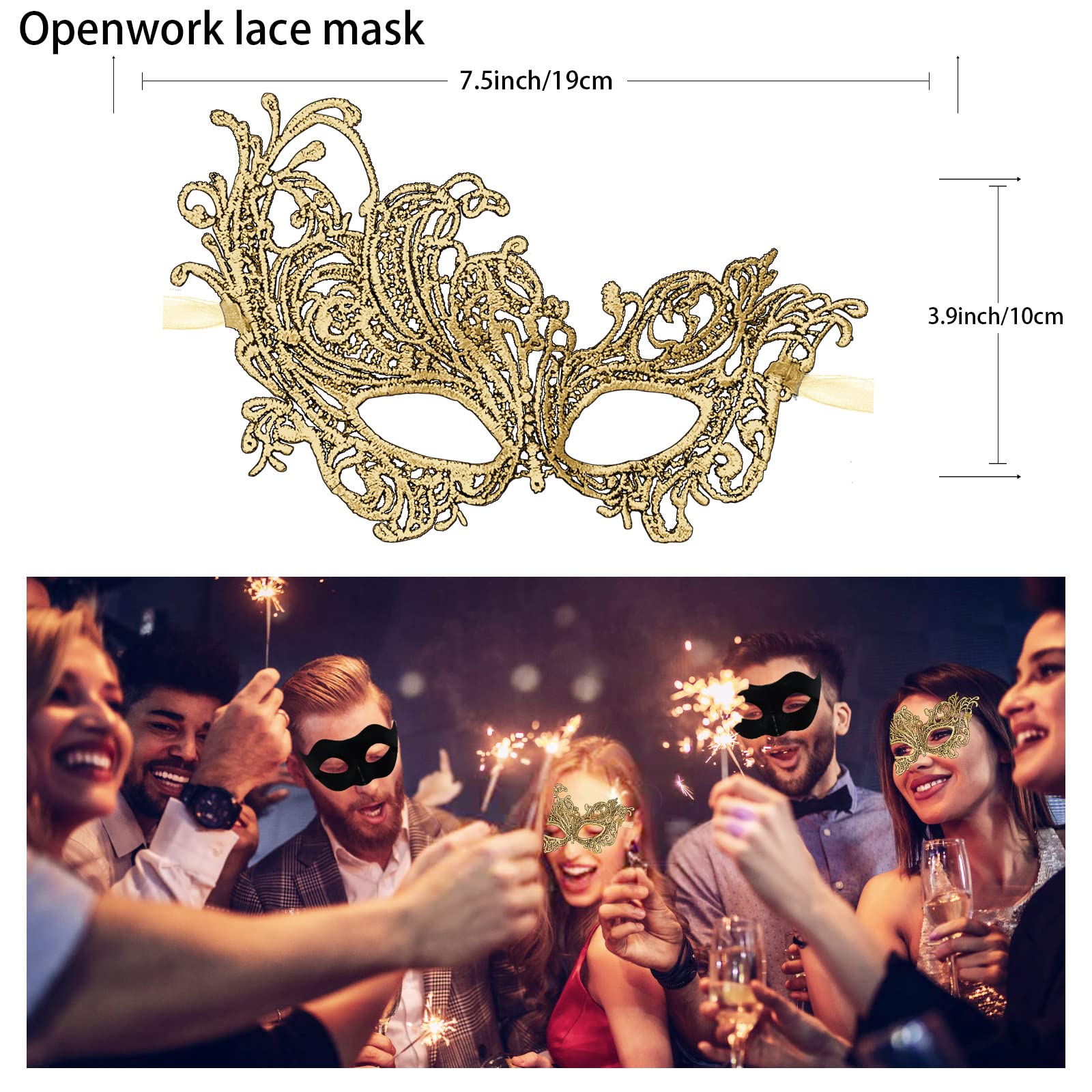 • 🎉【More Comfortable】The lace masks are made of thick and upscale lace and polyester that treated with high temperature bronzing process. So it's sturdy enough to not bend easily, also lightweight, it is comfortable for all day/night wearing, will never irritate your skin. Unique bronzing makes you the superstar of the ball!