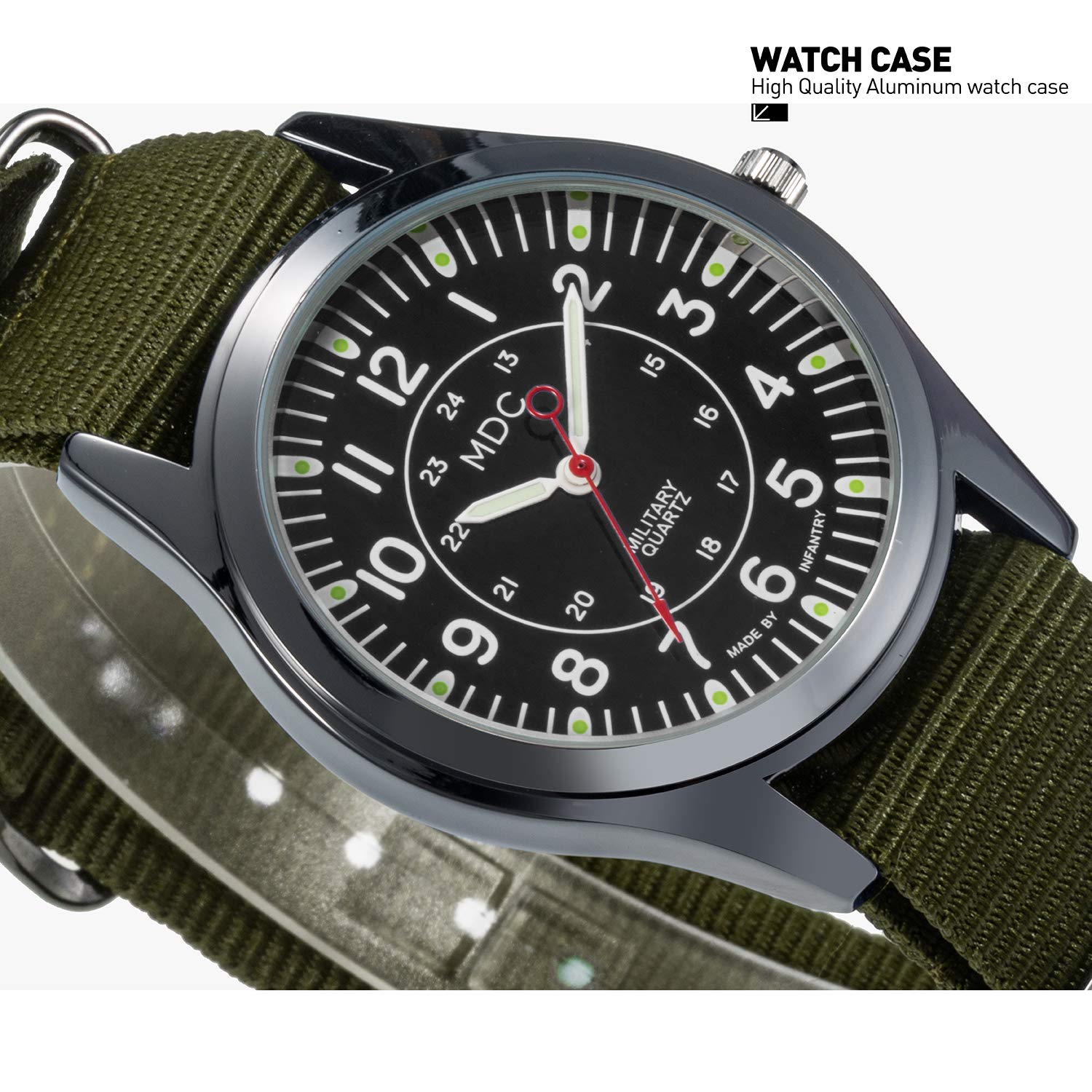 Infantry Black Military Watches for Men Tactical Wrist Watch Outdoor Sport Field Analog Work Army Wristwatch Men's Green Nylon Band by MDC