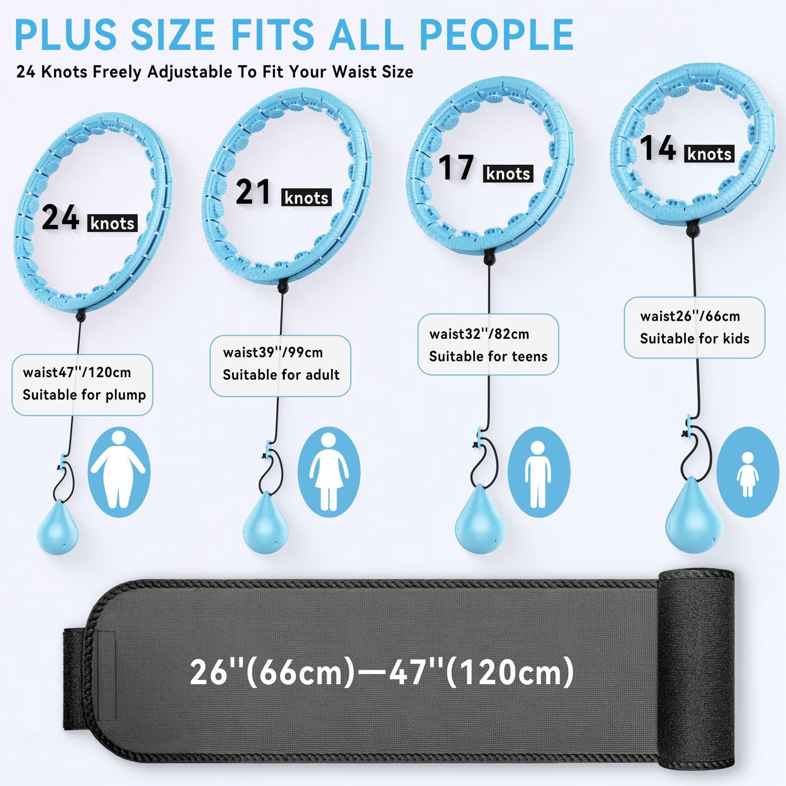 • 【Infinity Fitness Hoop】Our fitness hoop consists of 24 detachable knots,For all sizes between 30 inches (14 links) and 47 inches (24 links),infinity hoop plus size which can be adjusted easily according to your waistline.
