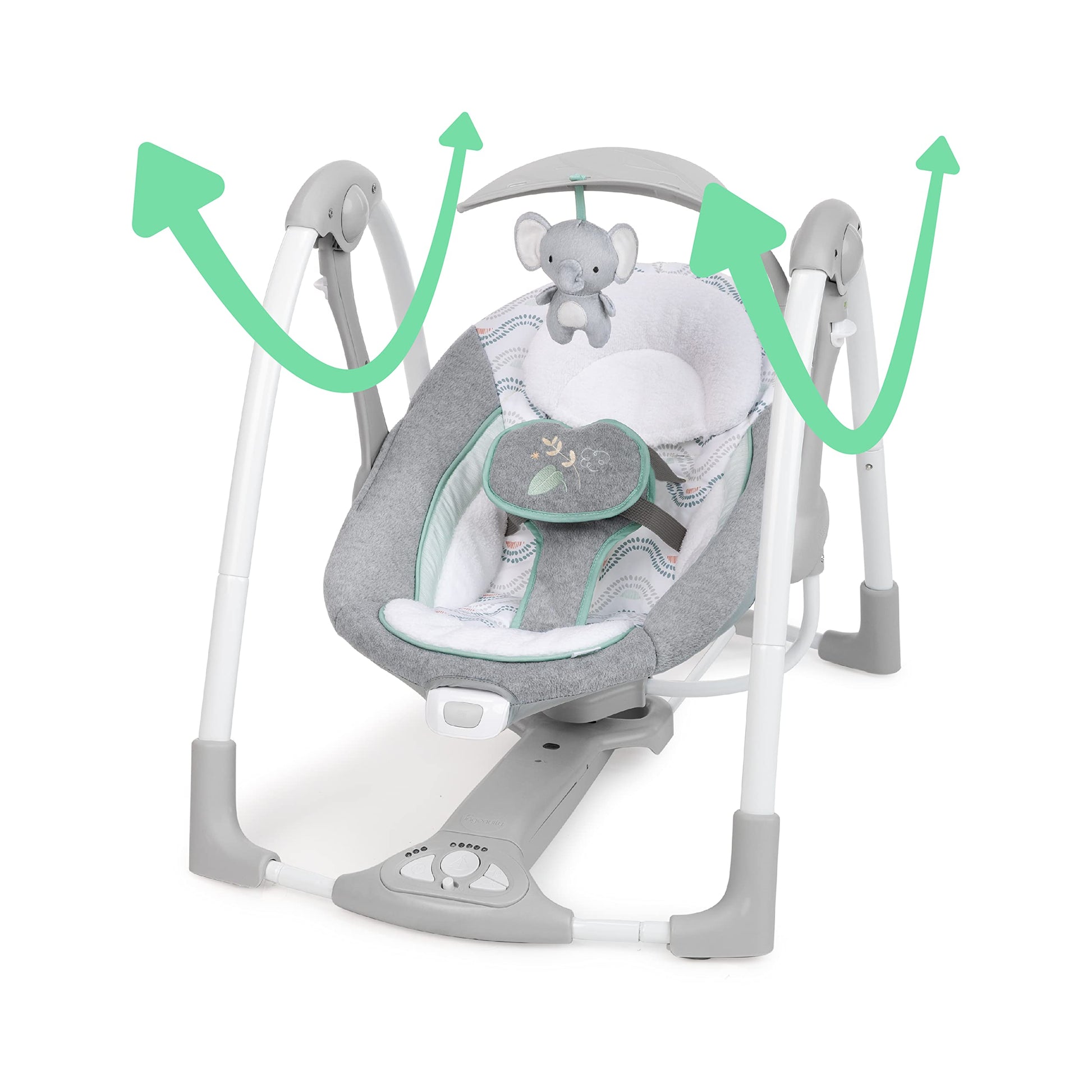 Ingenuity ConvertMe 2-in-1 Compact Portable Automatic Baby Swing & Infant Seat, Battery-Saving Vibrations, Nature Sounds, 0-9 Months 6-20 lbs (Swell)