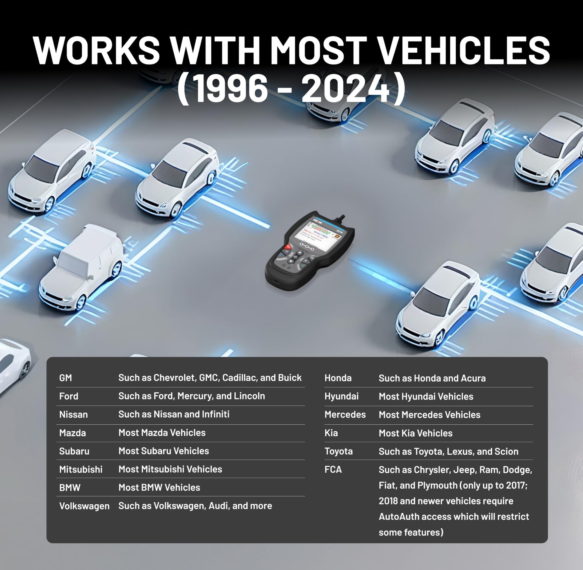 • OIL RESET & SMOG CHECK READINESS – The built-in oil light reset feature allows DIYers and mechanics to properly reset maintenance lights after an oil change. Check I/M readiness status to ensure your car is ready for an emissions test.
