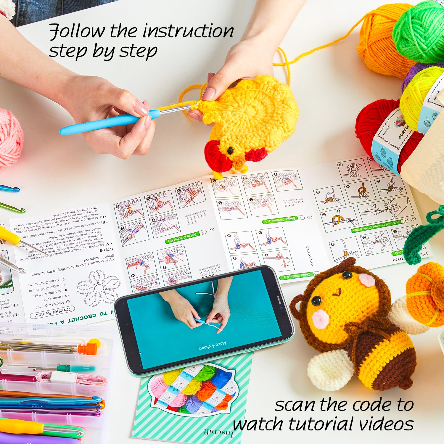 • 【Great starter kit】Ideal for beginners and experienced hobbyists - all you need included in a reusable bag , simple and easy to start a crochet project. Note: If used by kids, please under adults’ supervision.Contains sharp objects that may cause injury. Not for children age 12 and under.