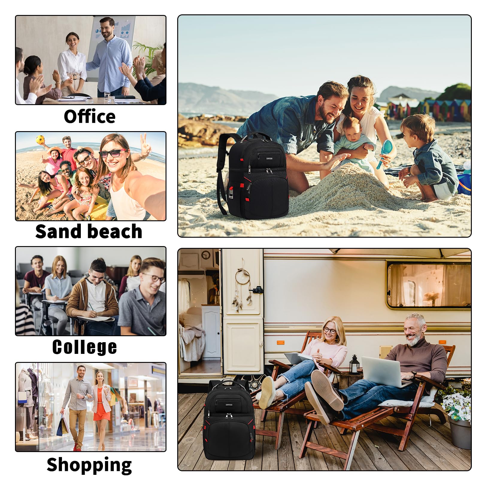 Insulated Cooler Backpack,Double Deck Leak Proof Cooler Bag,Insulated Backpack Cooler Lunch Backpack for Men Women,Black & Red