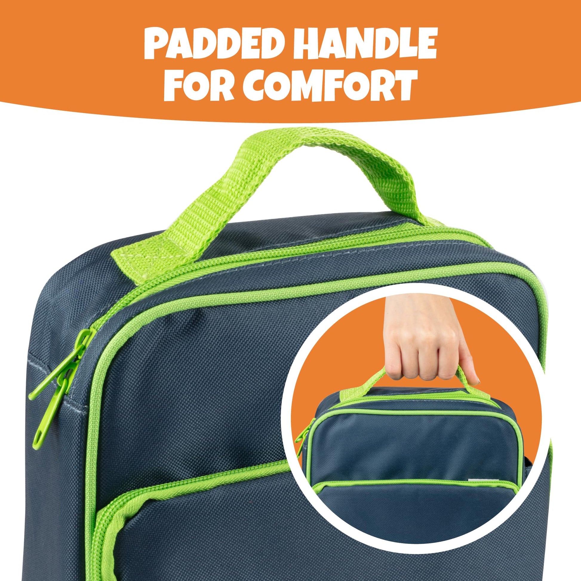 • Insulated Lunch Bag & Waterproof Lining: Kids will love this durable blue and green Bentology insulated lunch tote that keeps food and drinks fresh for hours! Ideal for bringing your lunch or snacks to School, Summer Camp, Daycare and more! Keep lunch mess free with this easy to wipe waterproof lining.