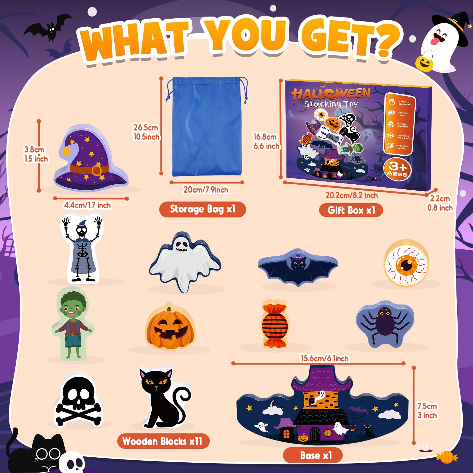 • Surprise Gift Choice: Packaged in a charming gift box, this Halloween stacking toy is an excellent choice for holiday presents. Perfect for Halloween, birthdays, or as a fun travel toy, it promises hours of entertainment and excitement