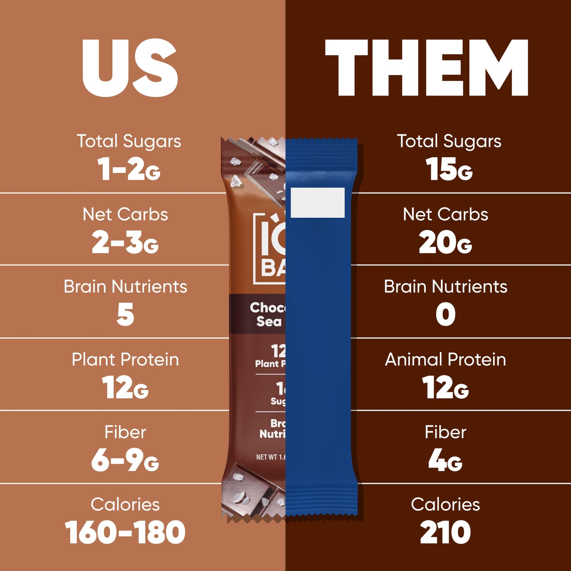 • KETO FRIENDLY SNACKS w/ Only 2-3g Net Carbs in Every Serving - Net carbs are carbs that are absorbed by the body, and our keto treats come with only 2-3g of net carbs in every serving. Each keto plant based protein bar is packed with 9-12g of total carbs, 6-9g of fiber, 10-13g of fats & 160-180 calories. Try our 7 flavors Chocolate Sea Salt, Peanut Butter Chip, Almond Butter Chip, Toasted Coconut Chip, Lemon Blueberry, Banana Nut, and Chocolate Mint Chip
