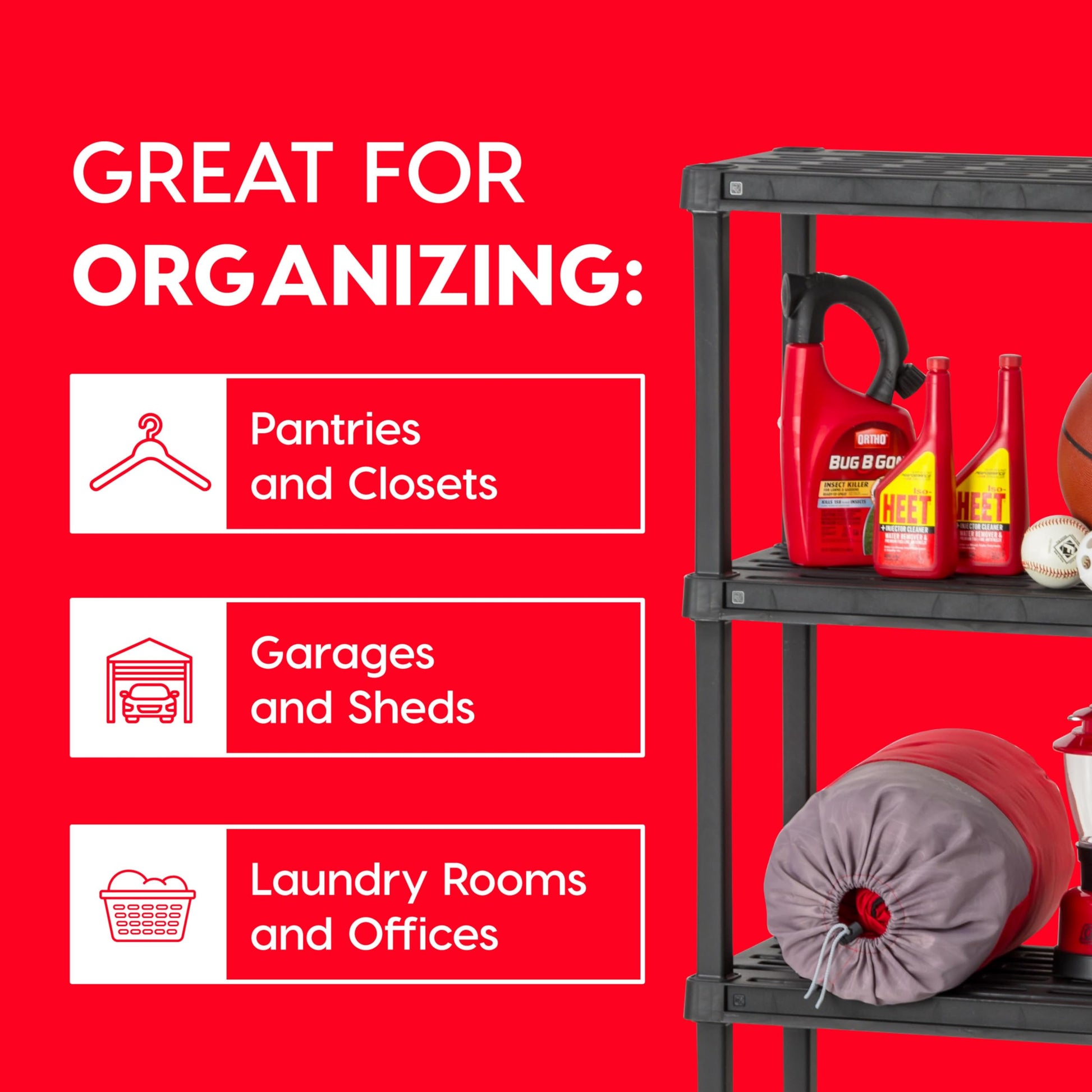 • VERSATILE: Strong enough to handle garage and tool shed storage but nice and neat enough to use in the home, the fixed height shelving unit makes a wonderful addition to any room in the house. This organizer shelf has got you covered.