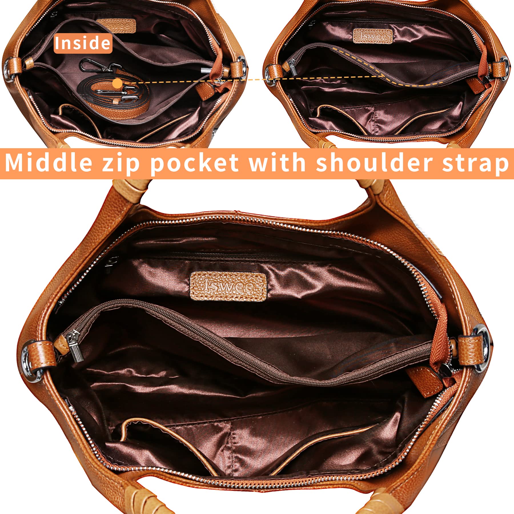 Iswee Genuine Leather Purses for Women Medium Size Satchel Handbags Crossbody Bag Shoulder Tote Bags Hobo Purses Trendy Ladies Hand Bag (Sorrel)