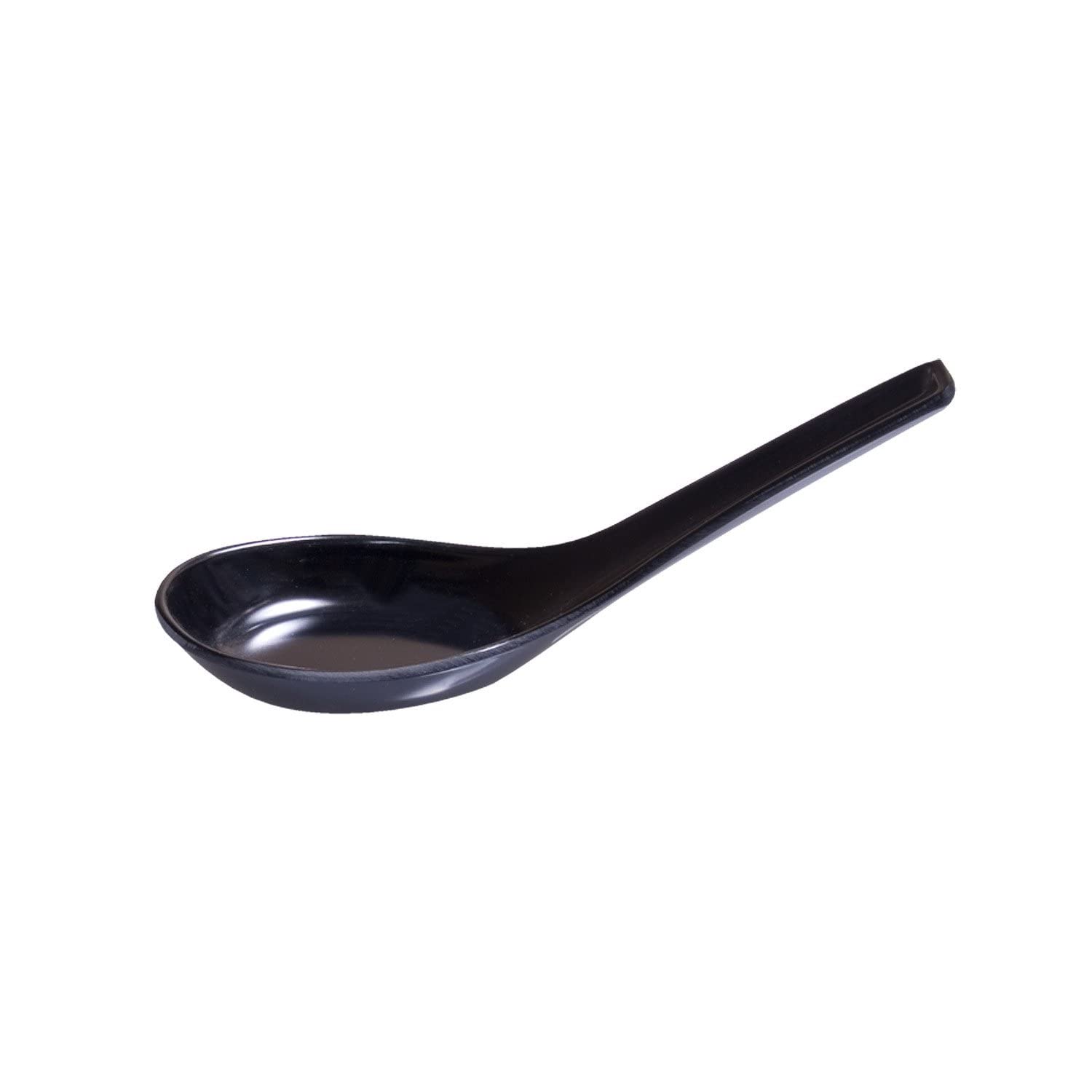 • Asian Soup Spoons. Professional grade and durable melamine with a clear finish for protection, Traditional Japanese Inspired Black Color Soup Spoons