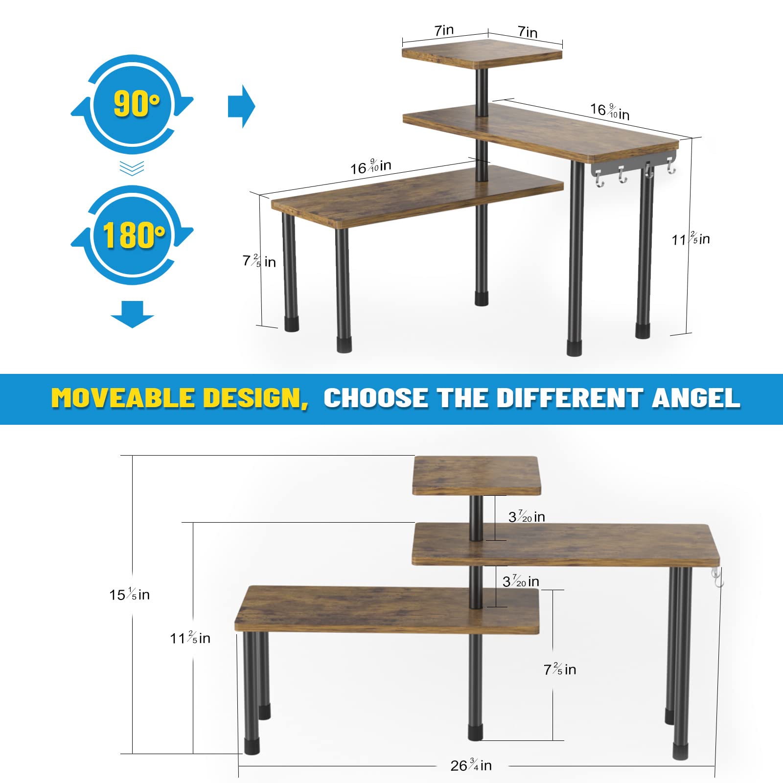 • MULTIFUNCTIONAL KITCHEN ORGANIZERS: The 3 tier small corner shelf with popular rustic brown color be can perfect as spice rack, coffee station organizer, over sink shelf, bathroom countertop organizer, plant stand which is a real hero that make your home well organized.