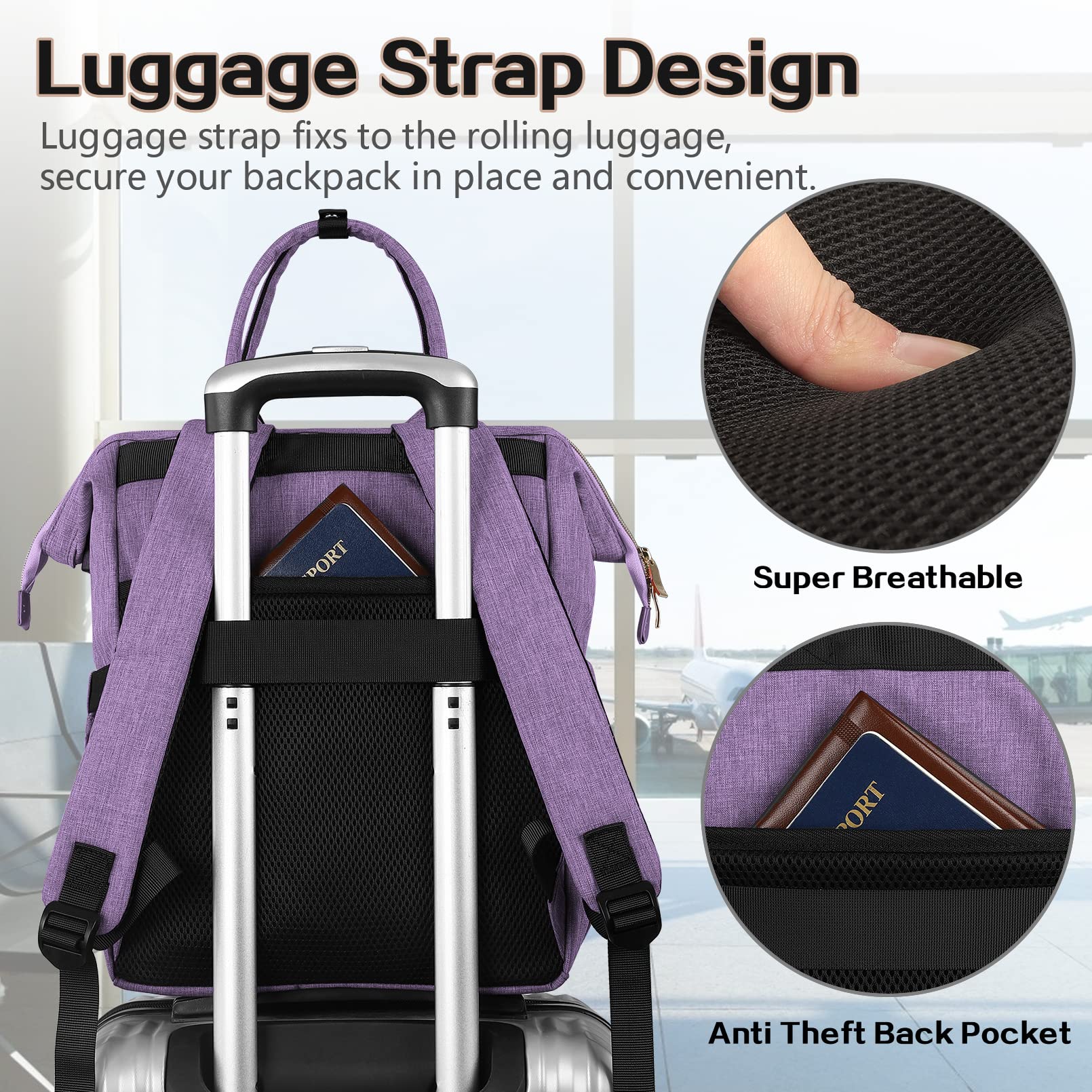 • TOTE DESIGN&LAPTOP COMPARTMENT: Travel backpack lunch bag of one separate laptop compartment hold 15.6 Inch laptop as well as 15 Inch,14 Inch and 13 Inch computer. The design of full opening of this college backpack is convenient to store items, the college items inside are clear at a glance, you don't have to worry about not finding what you want in this womens laptop bag