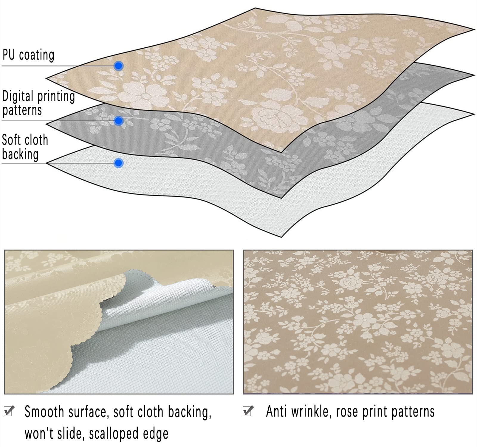 Material: Our durable vinyl tablecloth features 100% waterproof vinyl surface with soft cloth backing, heavy vinyl material but soft hand-feeling which close to fabric, non slip.