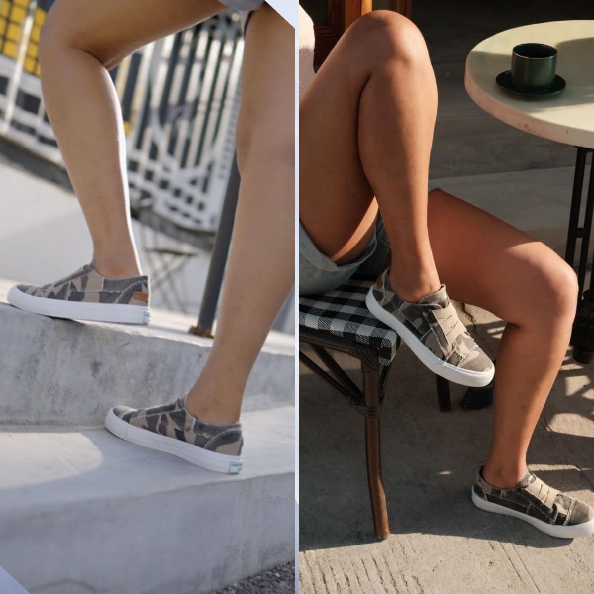 JENN ARDOR Women's Slip On Sneakers No Laces Low Top Canvas Sneakers Fashion Flats Comfortable Casual Walking Shoes