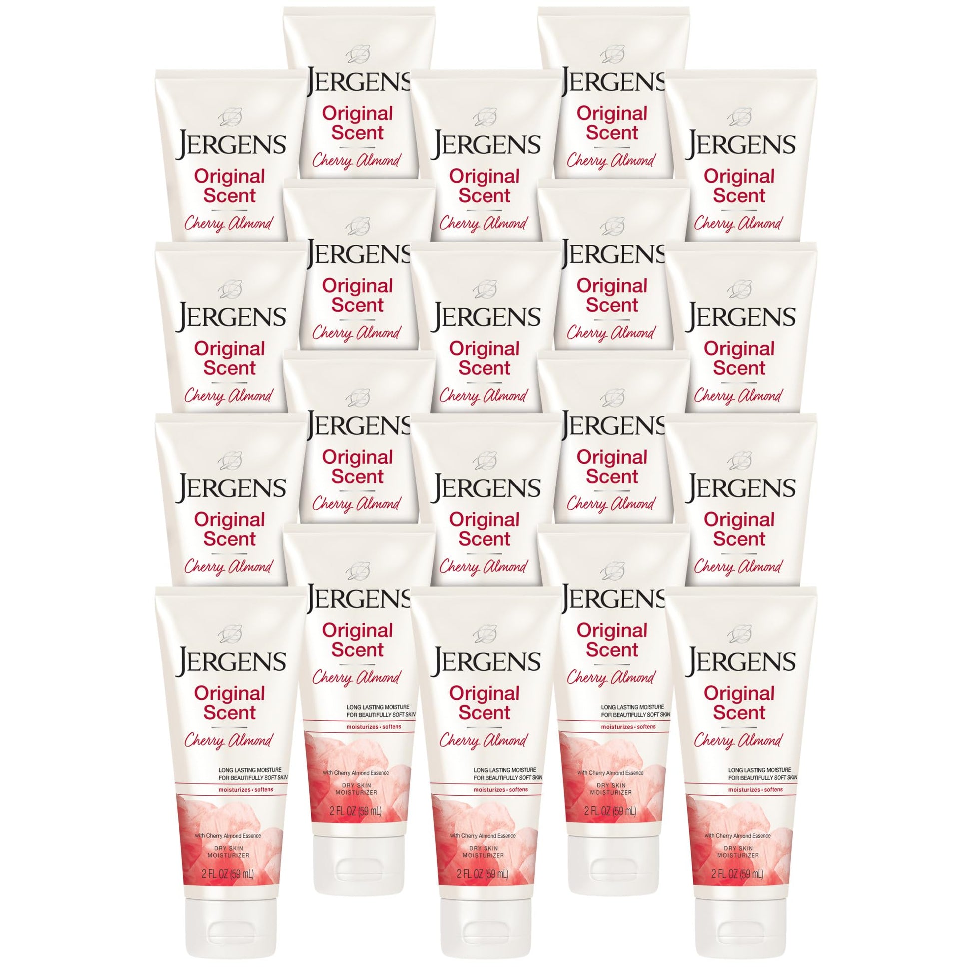 Jergens Original Scent Dry Skin Body Lotion, Hand and Body Moisturizer, Cherry Almond Essence, Dermatologist Tested, 2 Oz, Pack of 20