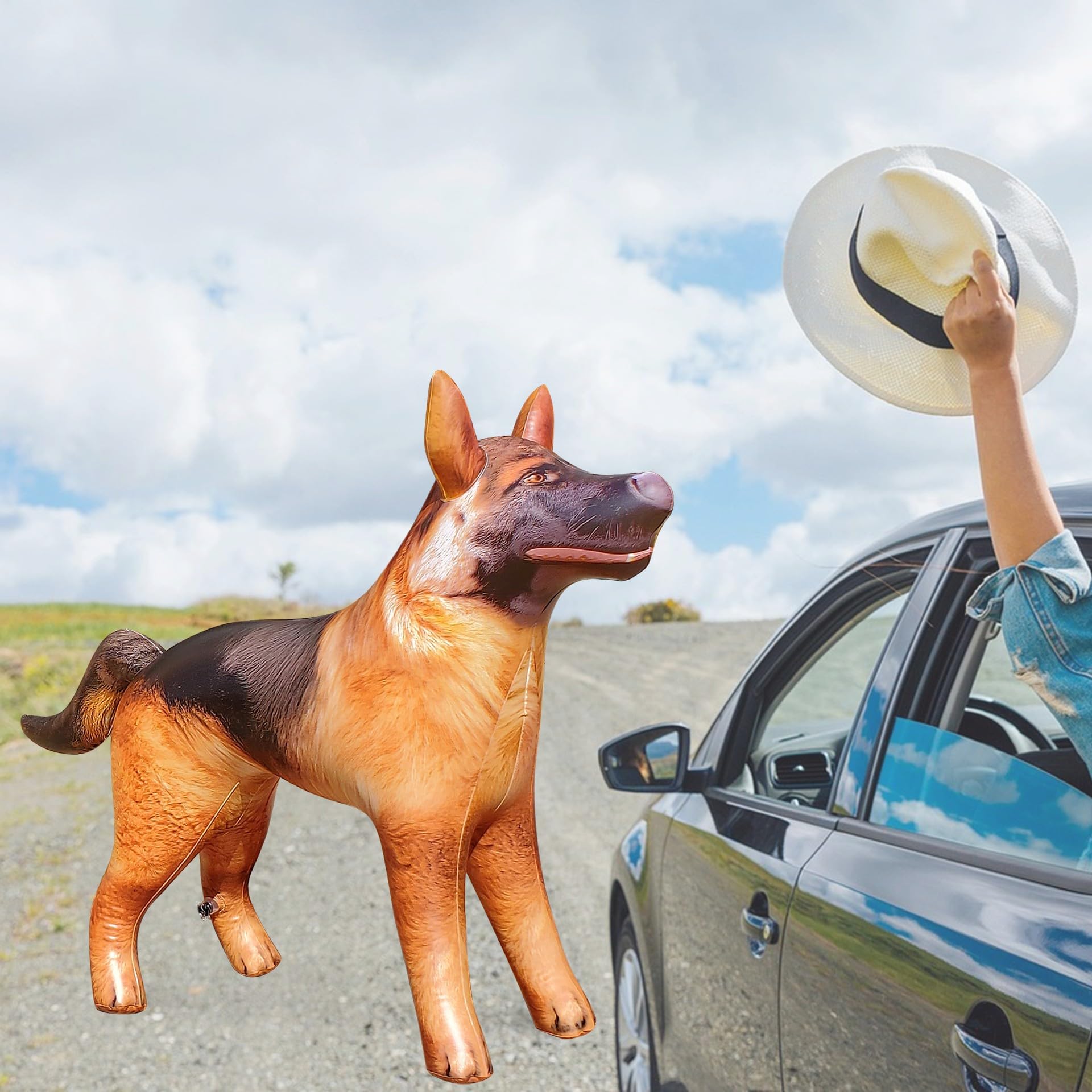• WHAT’S INCLUDED: Inflatable German Shepherd x1 packed in a resealable bag; Pump and repair kit not included