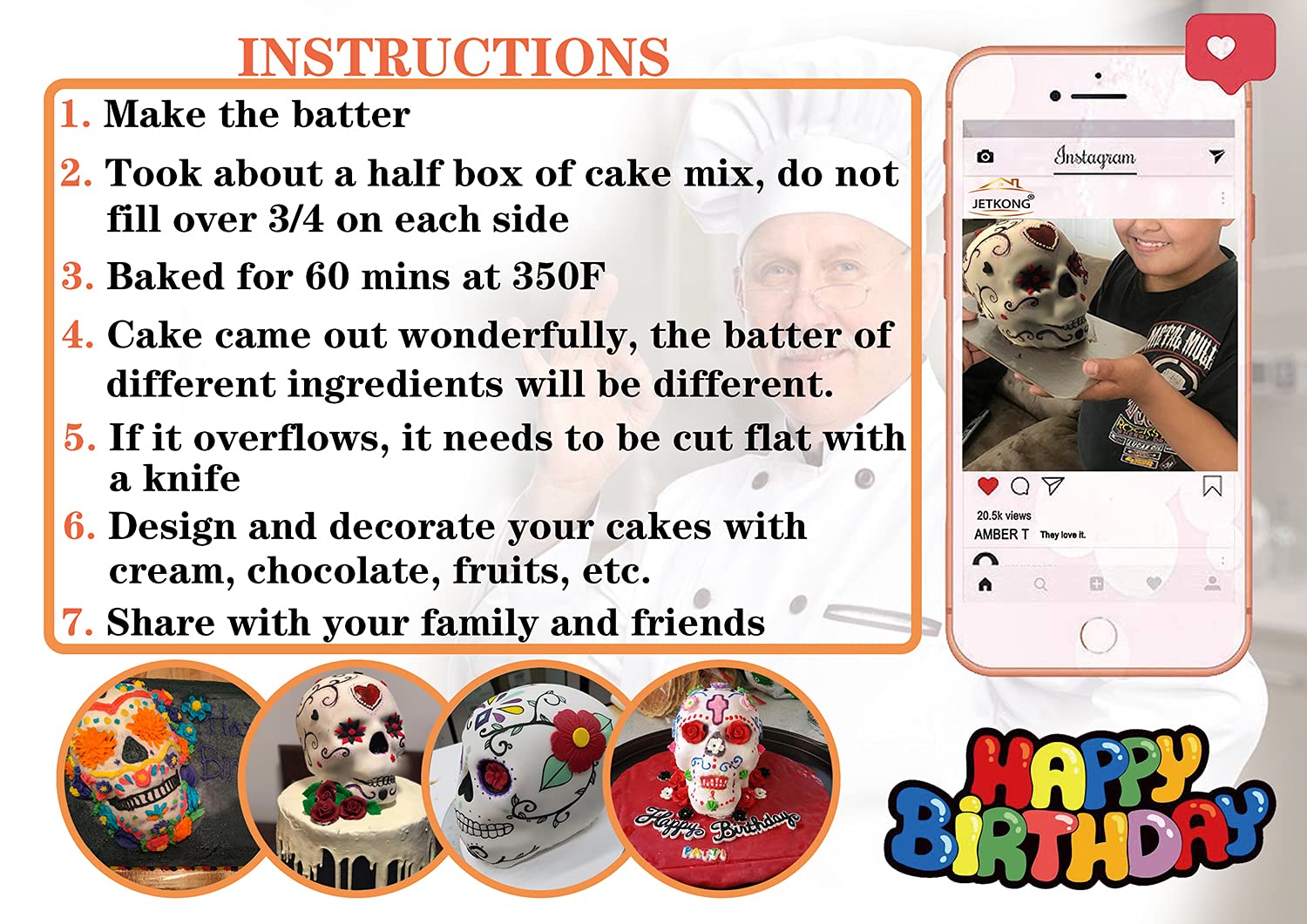• 100% SATISFACTION SERVICE - We have been committed to provide customer with the high quality product and offer a 100% SATISFACTION SERVICE for your Silicone Skull Cake Pan. If you have any questions, just contact us through your order. We will provide you with a 100% satisfaction solution.