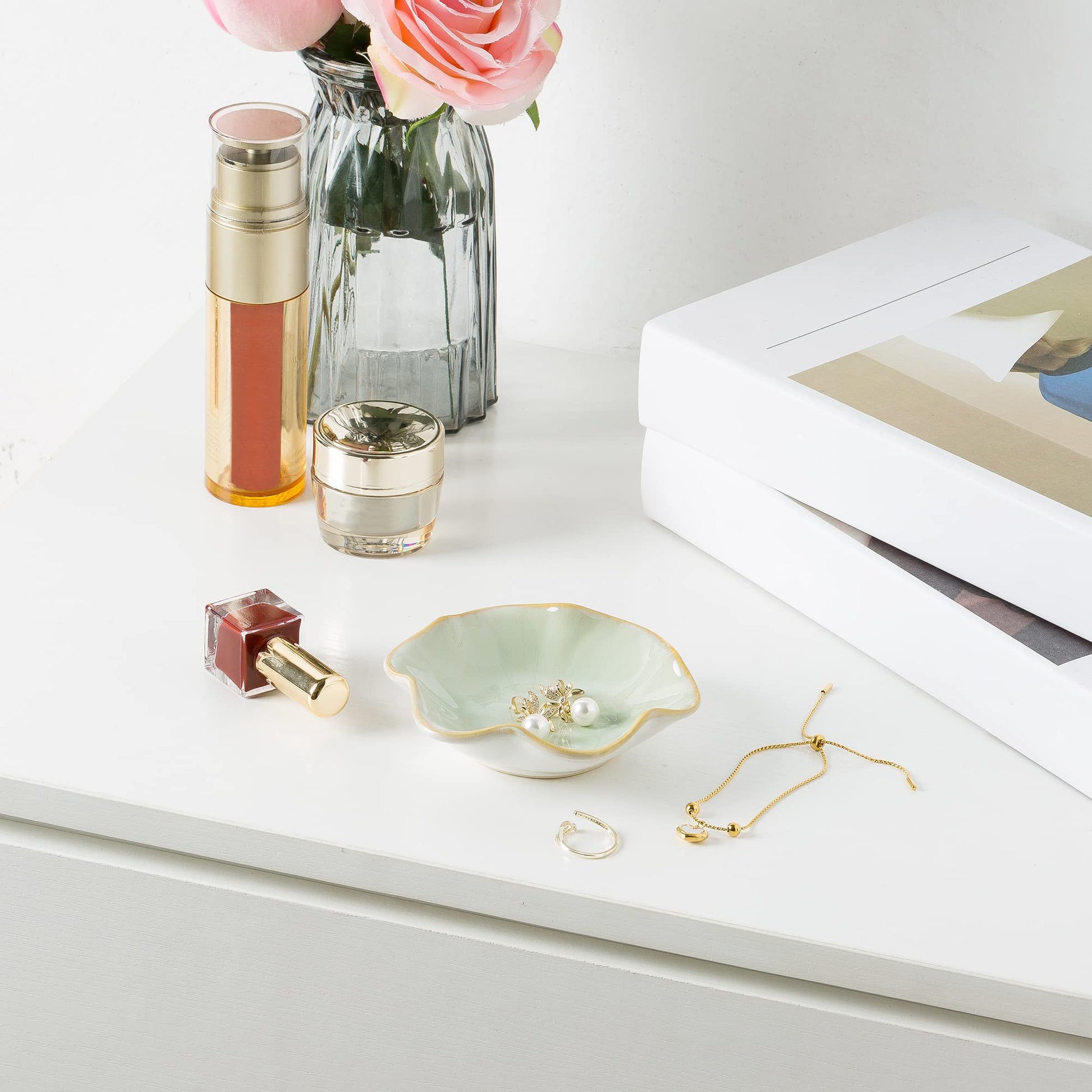 Jewelry Dish Tray, Ring Dish, Ceramic Trinket Tray, Key Bowl, Decorative Plate, for Friends Sisters Daughter Mother(Light Green)