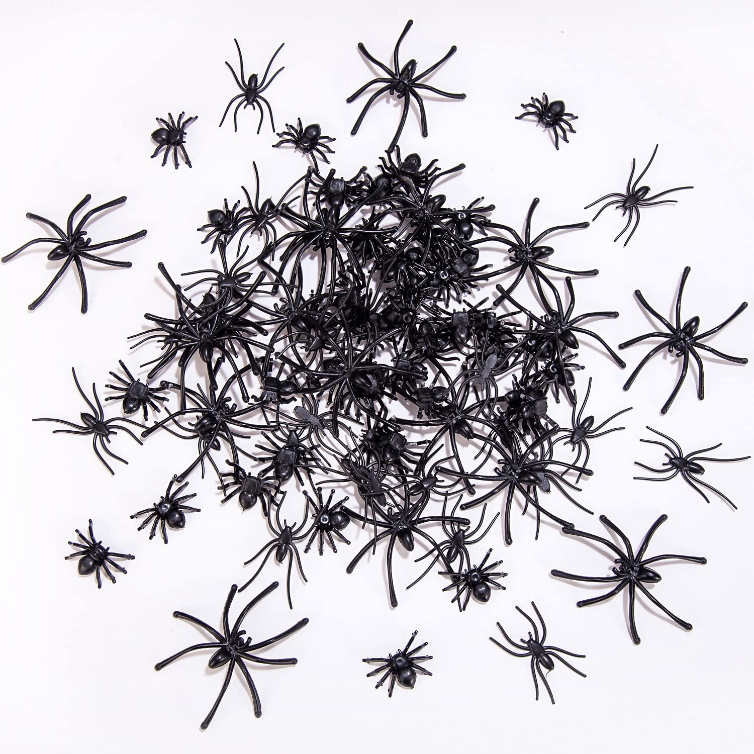 Ample Quantity: Package Contains 120pcs of small plastic spiders in 3 different sizes, these include 60pcs 2.2 x 1.5 cm / 0.9 x 0.6 inch plastic spiders, 30pcs 3.8 x 2 cm / 1.5 x 0.8 inch plastic spiders, and 30pcs 5 x 4.5 cm / 2 x 1.8 inch plastic spiders. Enough for your Halloween decoration or prank needs.