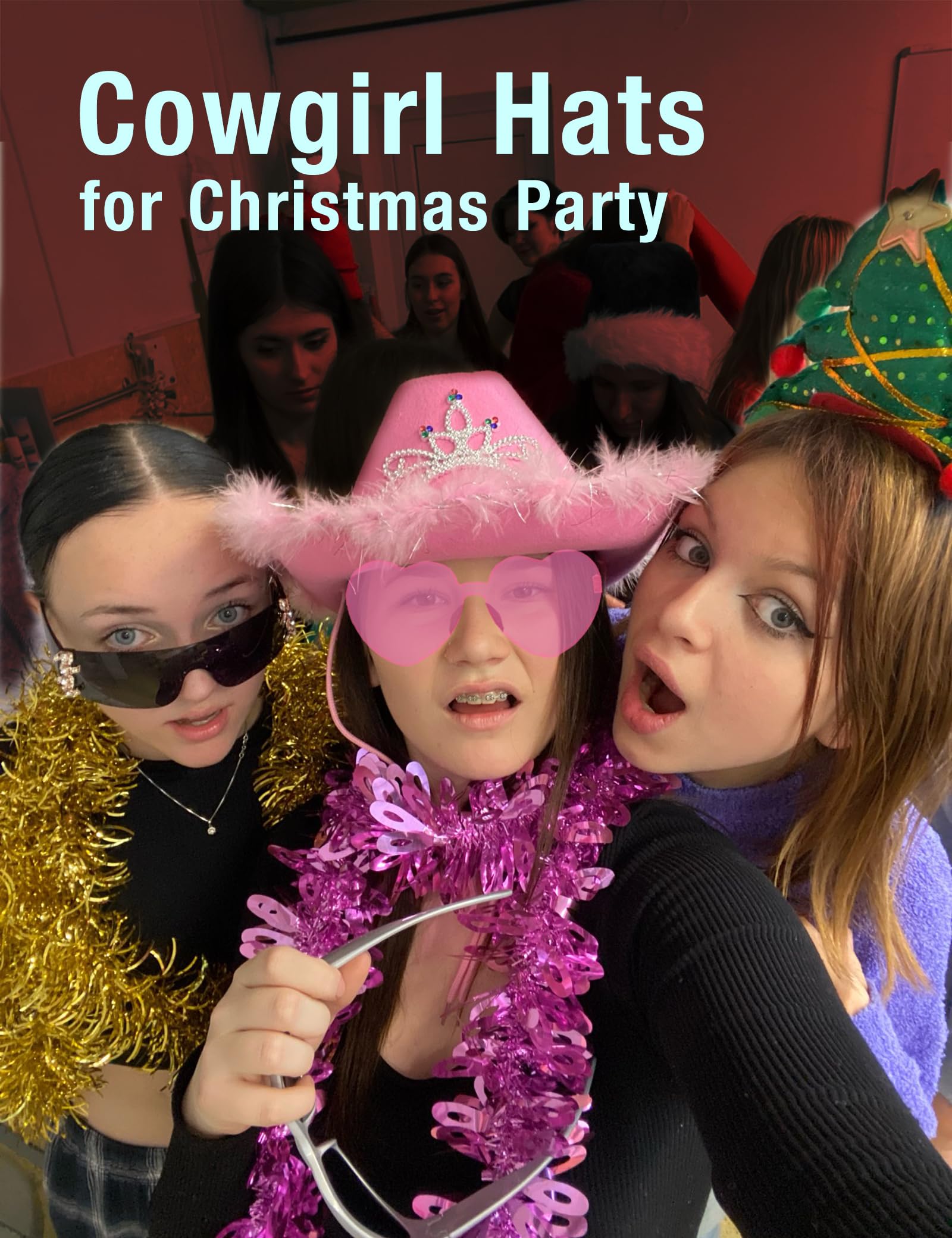 JICASTO Cowboy Hat Pink Cowgirl Hat with Color LED Light Tiara Crown for Girls Rodeo Party Hats with Heart Glasses